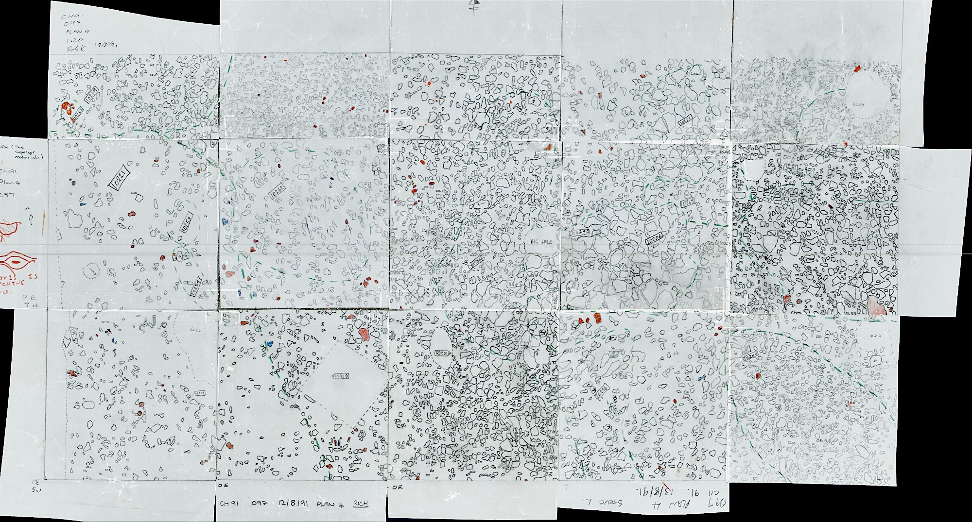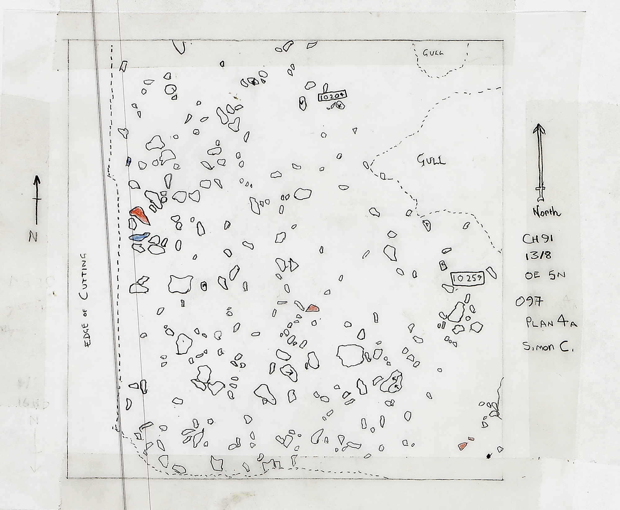 A flat area in the centre of the Neolithic area. Numerous features were uncovered, however in common with much of the surrounding area no obvious structures were determined.