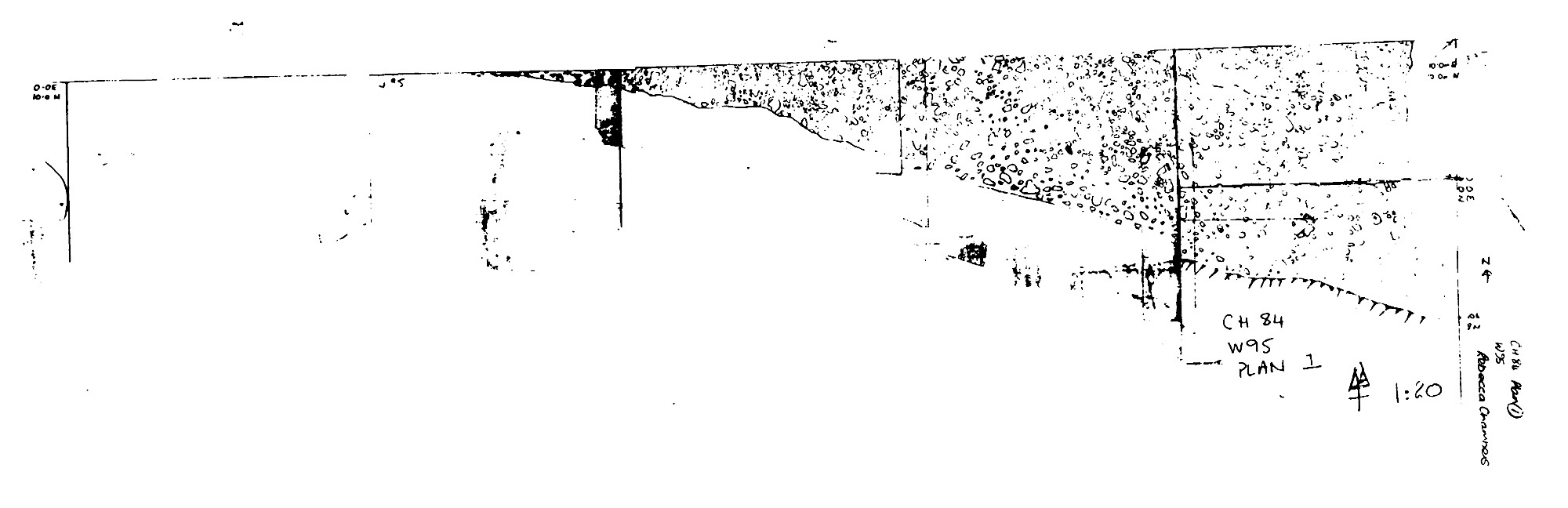 View NW across the CH83 cuttings, Sacred Circle in the left foreground, showing location of W95.