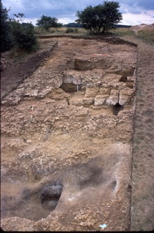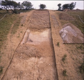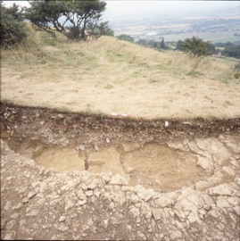 The existence of any Neolithic occupation at Crickley was unknown until the excavation. The two ditch rings of the first Neolithic settlement - called causewayed because of the gaps in the ditches - were followed most of the way round the hill, season by season.
