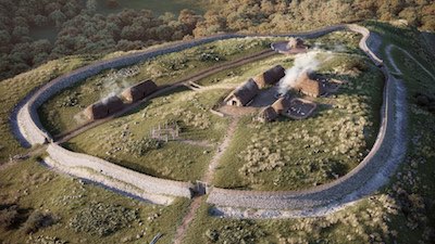 Johnny Wall, a 3d artist who lives near the site and who has an interested in all things historic, has used the excavation archive to produce reconstructions of how the site of the Battle of Crickley Hill might have looked. While some of this is inevitably conjecture, this is a perfectly plausible reconstruction of how the site looked at about 3500BC. Click the thumbnails to see the full images (each around 2mb). The Trust is very grateful for his permission to use these images, which remain his copyright. You can see his other work at his website, www.johnnywall.co.uk