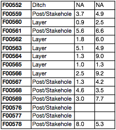 Immediately inside the entrance there was clear evidence of a large rectangular house which dates to the first Iron Age hillfort period (Period 2). These postholes form part of structure A1.