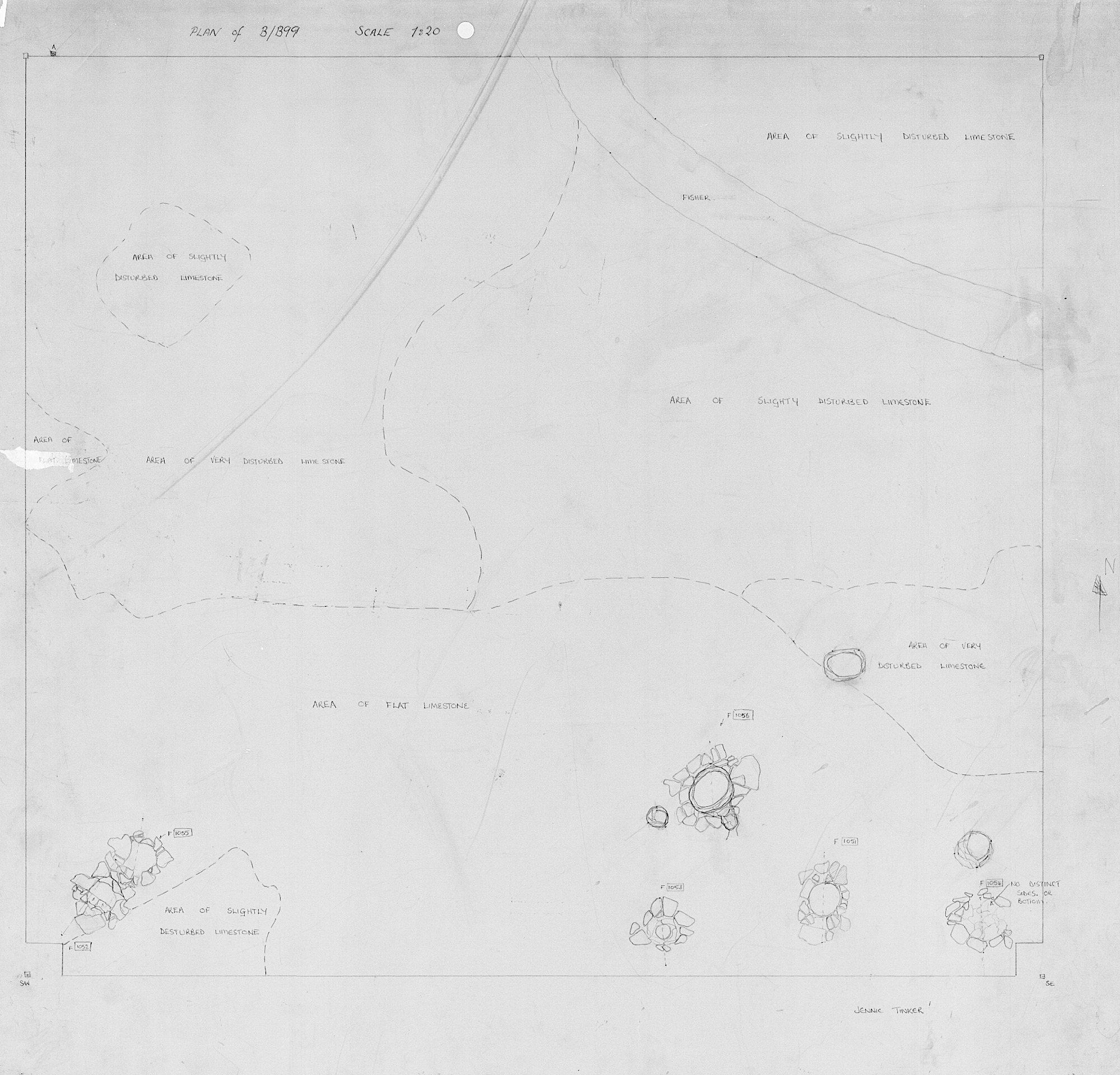 The vague collection of apparently random postholes grouped together as Structure D8 spreads into the SE of this square. It appears roughly rectangular, but little else can be said.