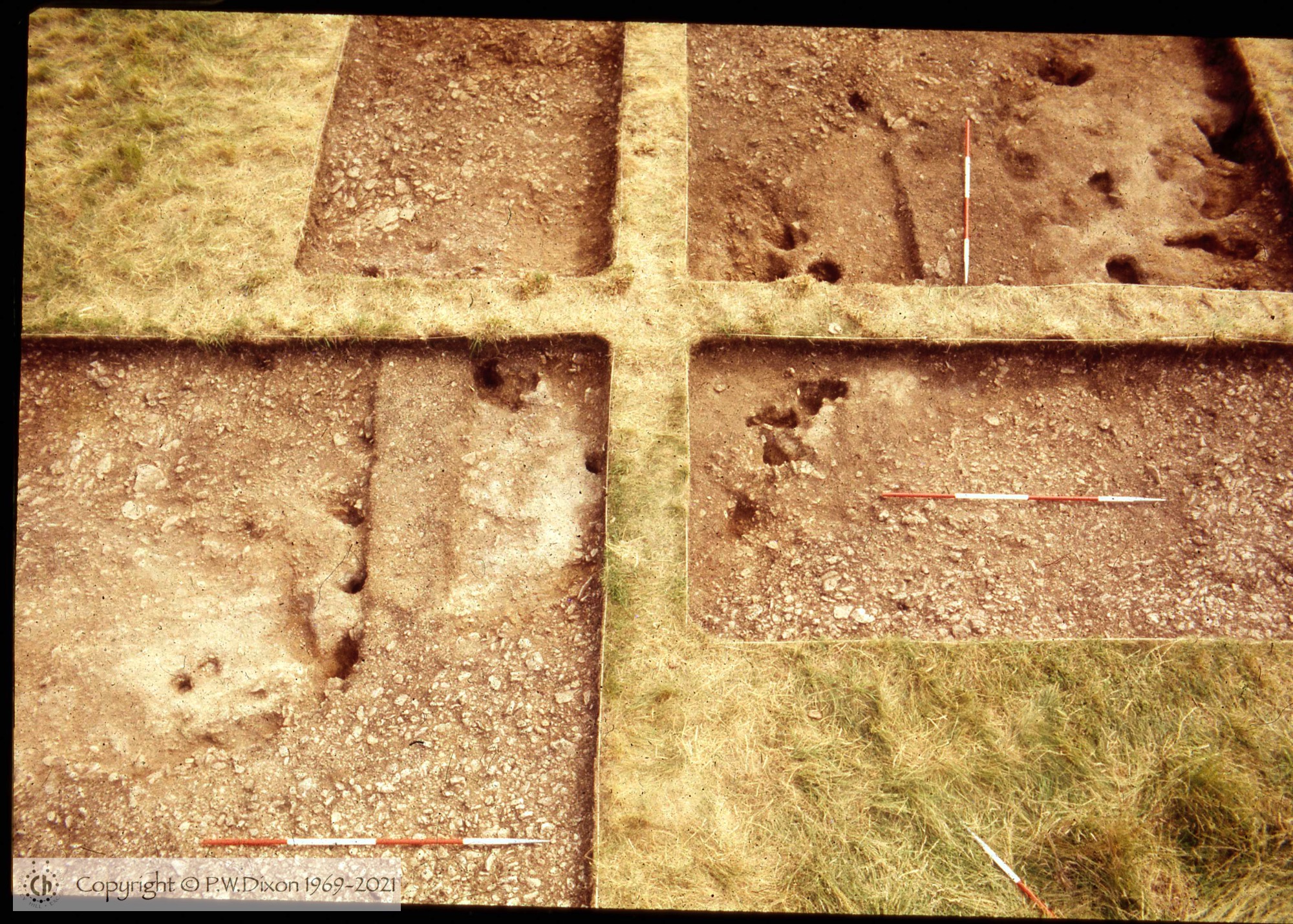 After two years concentrating on the Iron Age, CH71 saw the first exploratory cuttings in the interior. The site chosen for these cuttings was on the edge of the flat area subsequently found to be covered in structures. Only a few features here, but fortunately enough to prompt a much bigger opening in CH72.