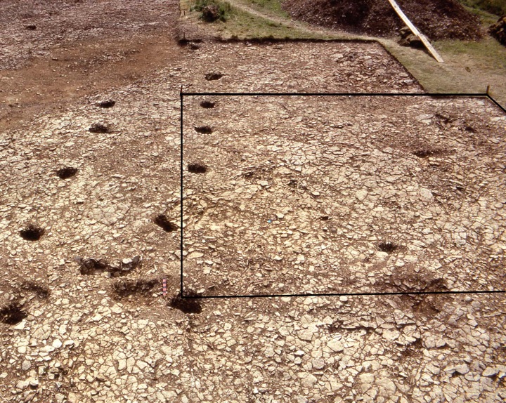 Period 2 longhouse Structure A3 looking W, showing position of cutting D1.