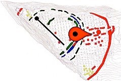 This square occupies the gap between the two major Longhouses, Structures A4 and A5. It has suggested that there is an ephemeral late structure (D9), centred on the prominent hearth F00425, which was right below the turf and well preserved. A few postholes might suggest a round structure.