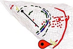 The Eastern part of this square was excavated in CH82 as CQ, skewed to the site main grid. The Eastern 6m was then re-opened in CH83 on the main grid. The main feature of this cutting was a well preserved post-hillfort house, large slabs overlying a drainage gully packed with finds, and a central hearth.