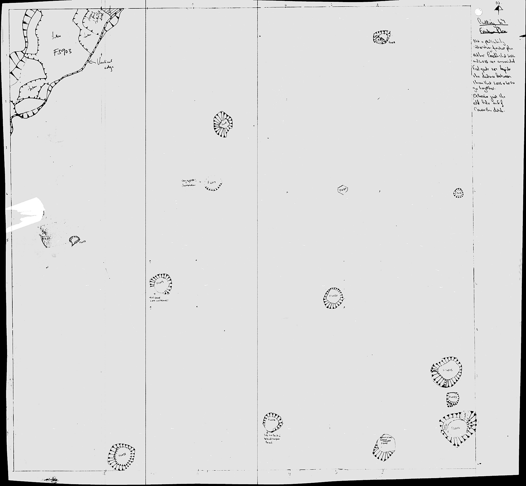 The causewayed camp ditch seen in L6 continues in the NW corner of this square (see Feature Plan). Otherwise, a scattering of postholes on this level ground was revealed.