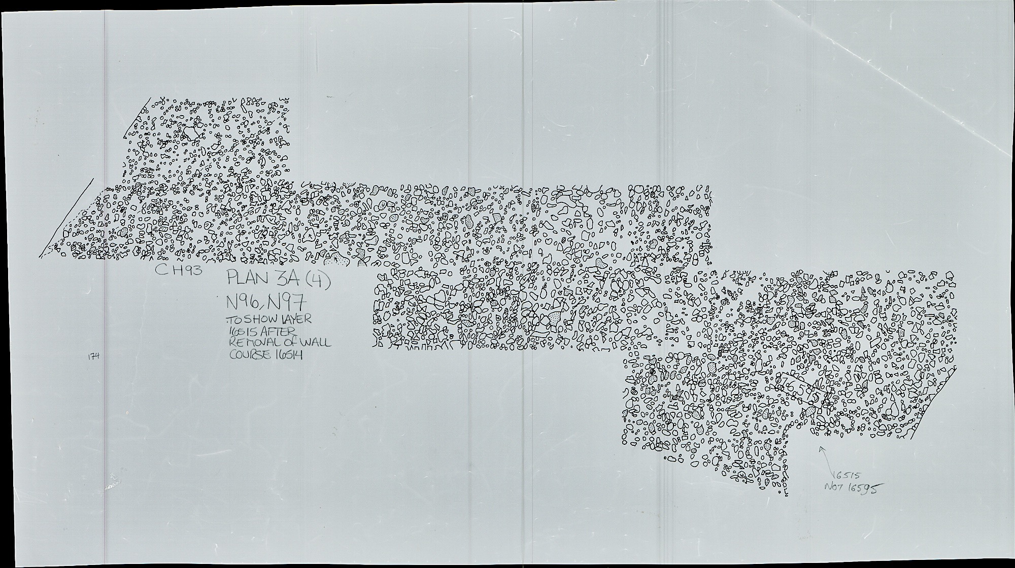 The biggest cutting of the CH93 excavation on the North slope, designed to pick up the outer rings of Neolithic ditches. The continuous ditch was found in the bottom of M95, and the line of causewayed ditches was excavated in the West of this cutting, buried under the bank of the later Neolithic defences.