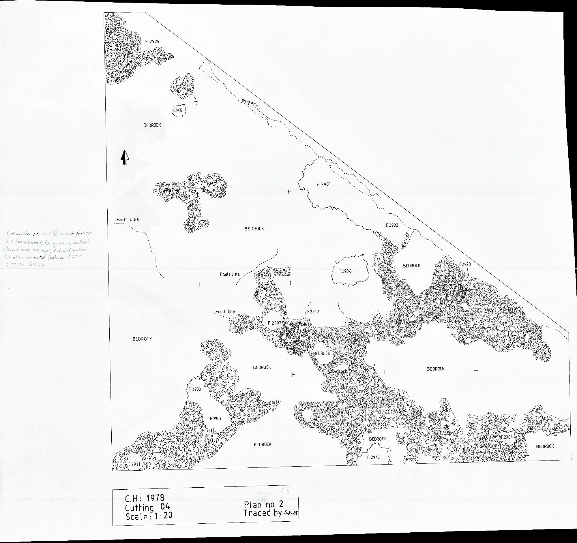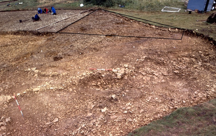 Quite a steeply sloping cutting on the edge of the Long Mound valley. Despite the gradient there are quite a few postholes and other features beneath the surface scatter, although no clear alignments could be seen. It lay just inside the bank of the continuous ditch enclosure.