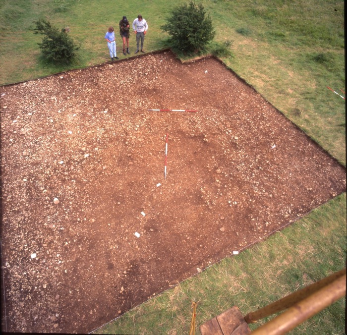 A flat area in the centre of the Neolithic area. Numerous features were uncovered, however in common with much of the surrounding area no obvious structures were determined.