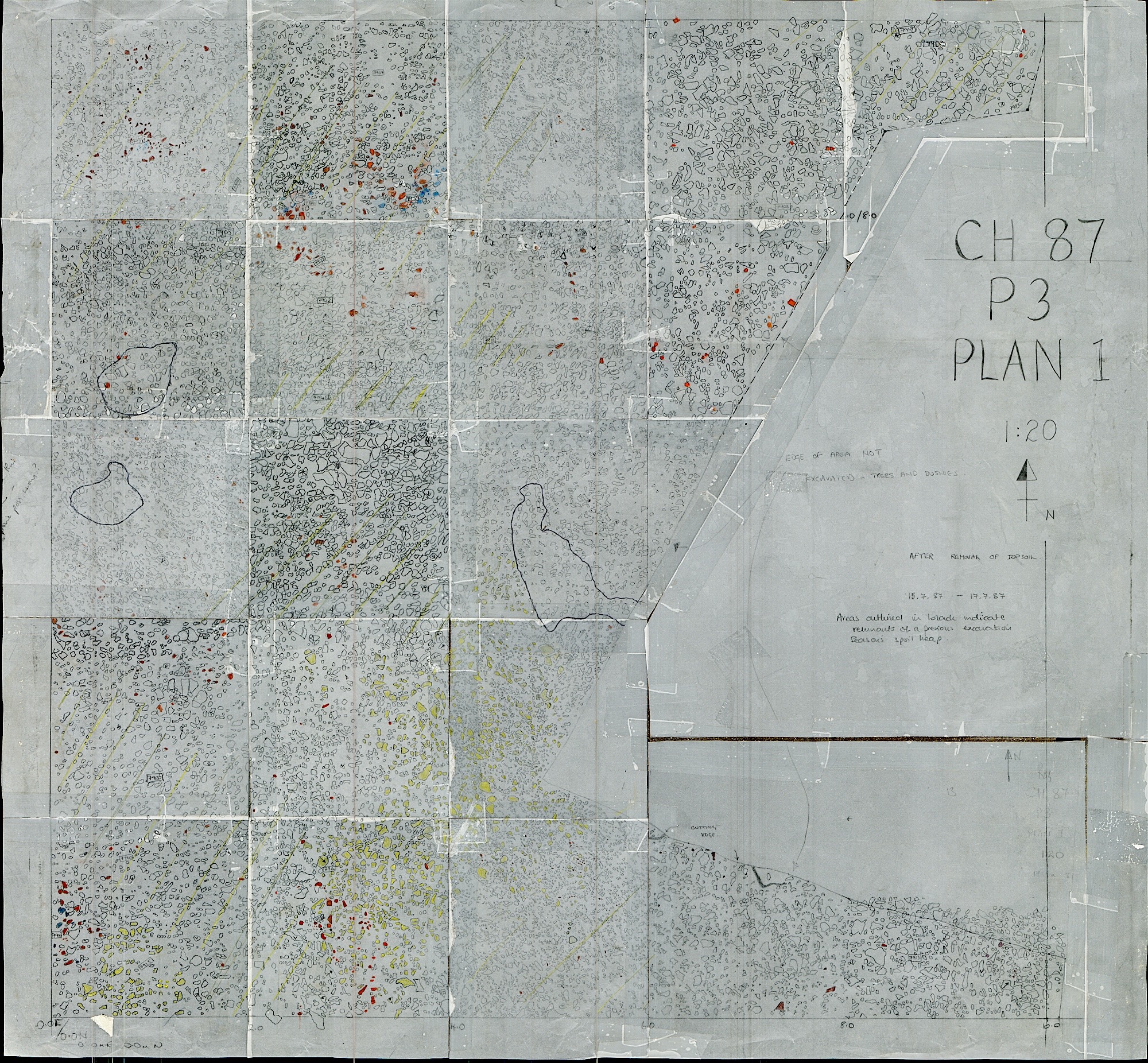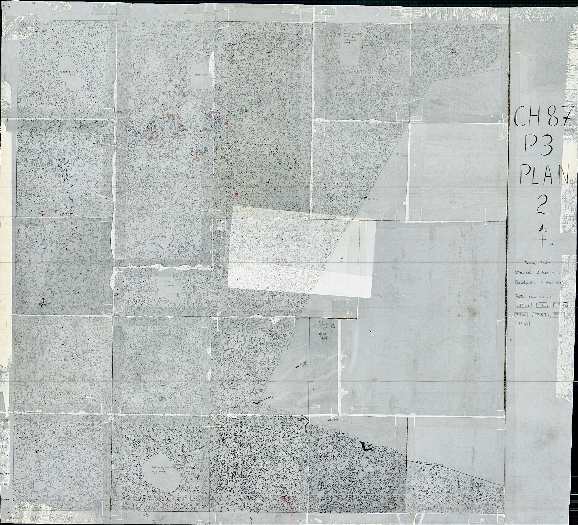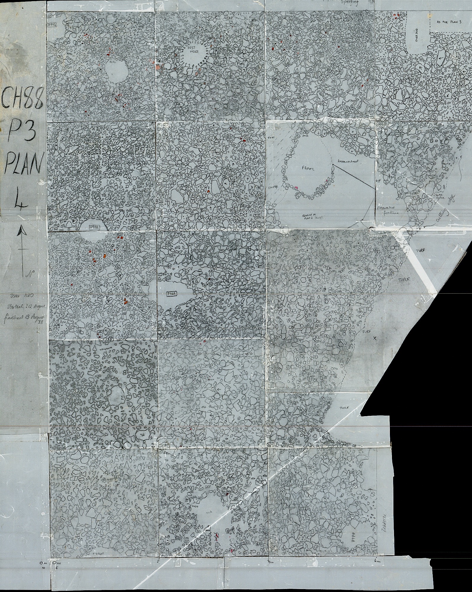 Looking SE across P3 at the end of excavation with the pits visible as partly excavated.
