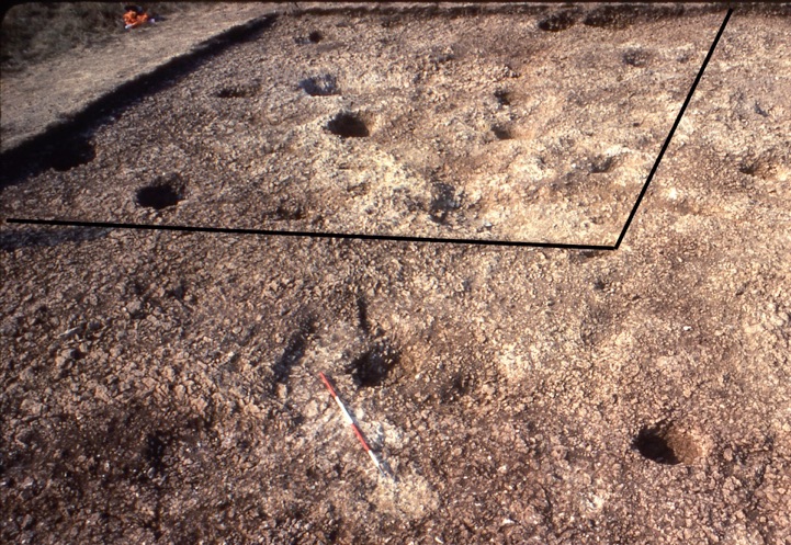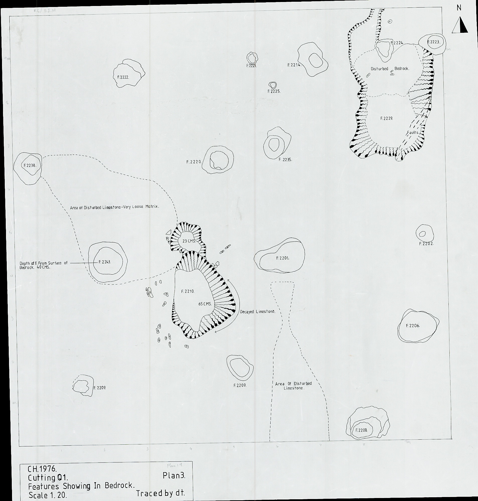 Neolithic activity in the form of considerable numbers of finds continued across this square, and there are certainly some Neolithic features. However, once again no obvious structures. Some of the larger holes might be in the sequence of pits obvious in Q2/P2 Q3 to the South, perhaps Long Mound related.