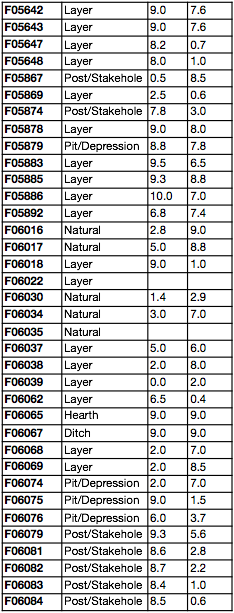 The post-hillfort settlement featured prominently in the upper layers of this square. The obvious linear feature visible in the photo and plan 1a is presumably part of this phase - a fence line perhaps. Lower down, Neolithic features appeared.