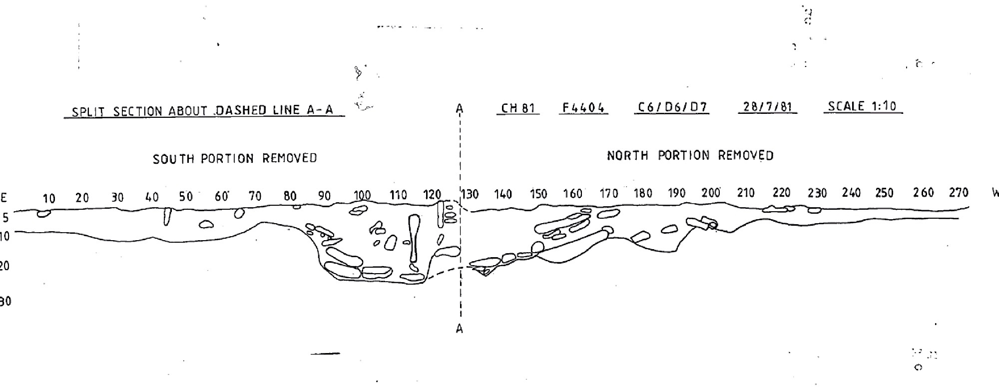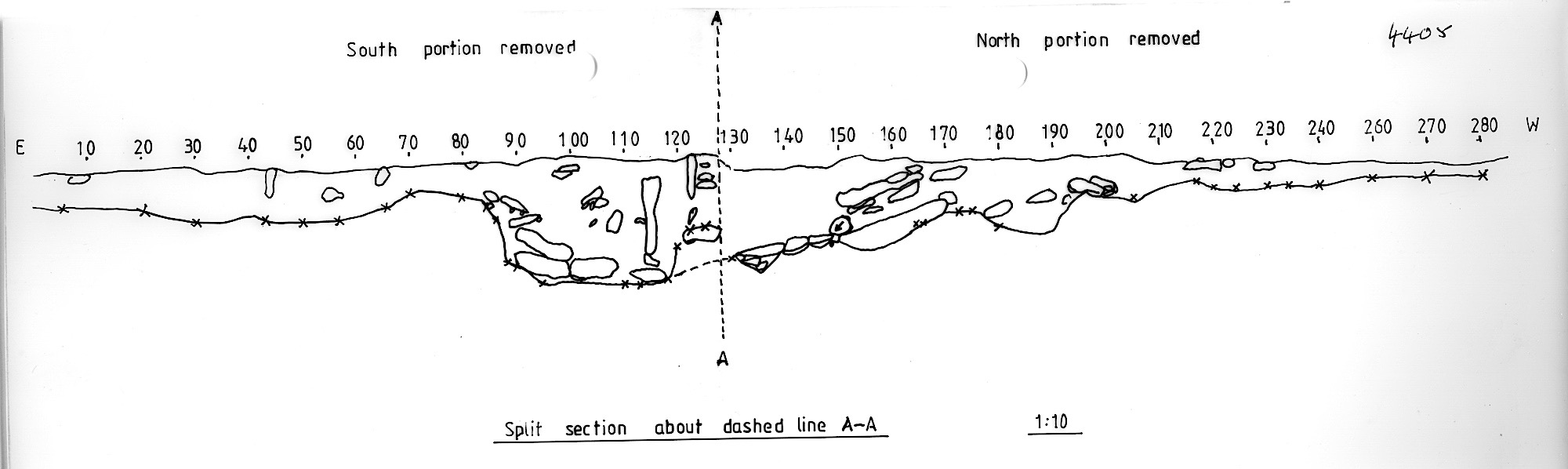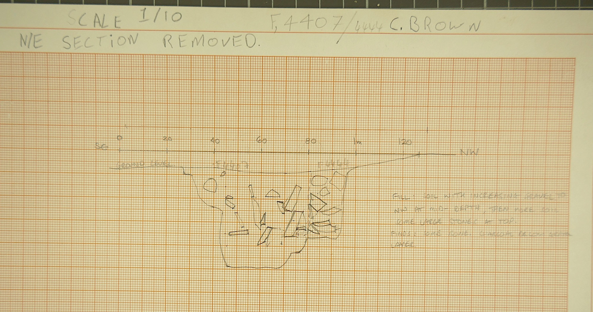 cut through bedrock. Fill: soil and loose gravel and a few larger stones.