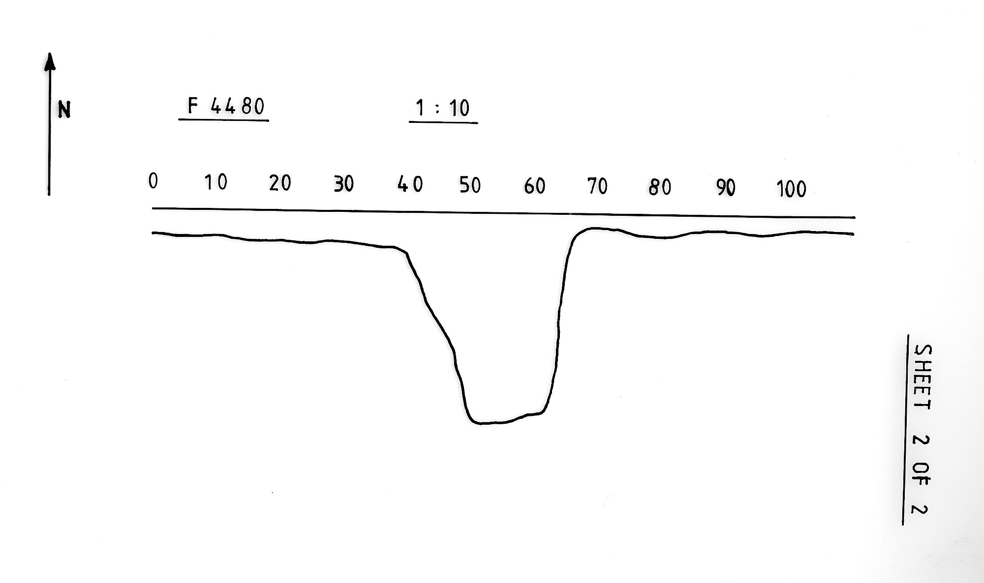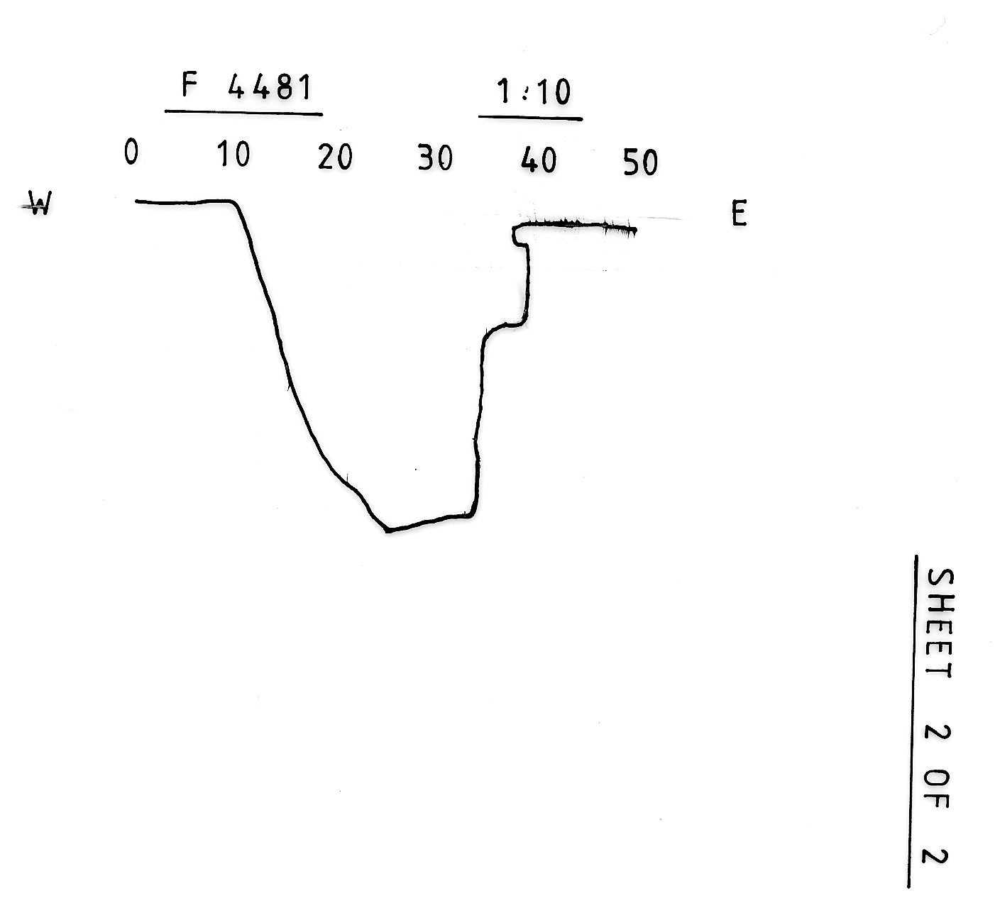 and very shallow sloping sides, perhaps a natural fault. |