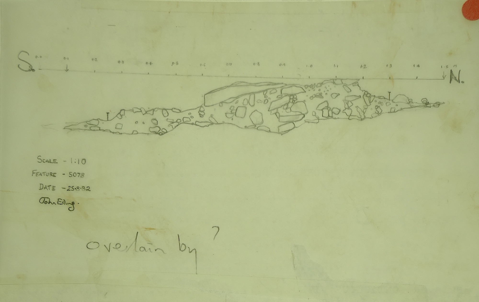 of laid flat slabs with some evidence of burning: this may be part of a porch