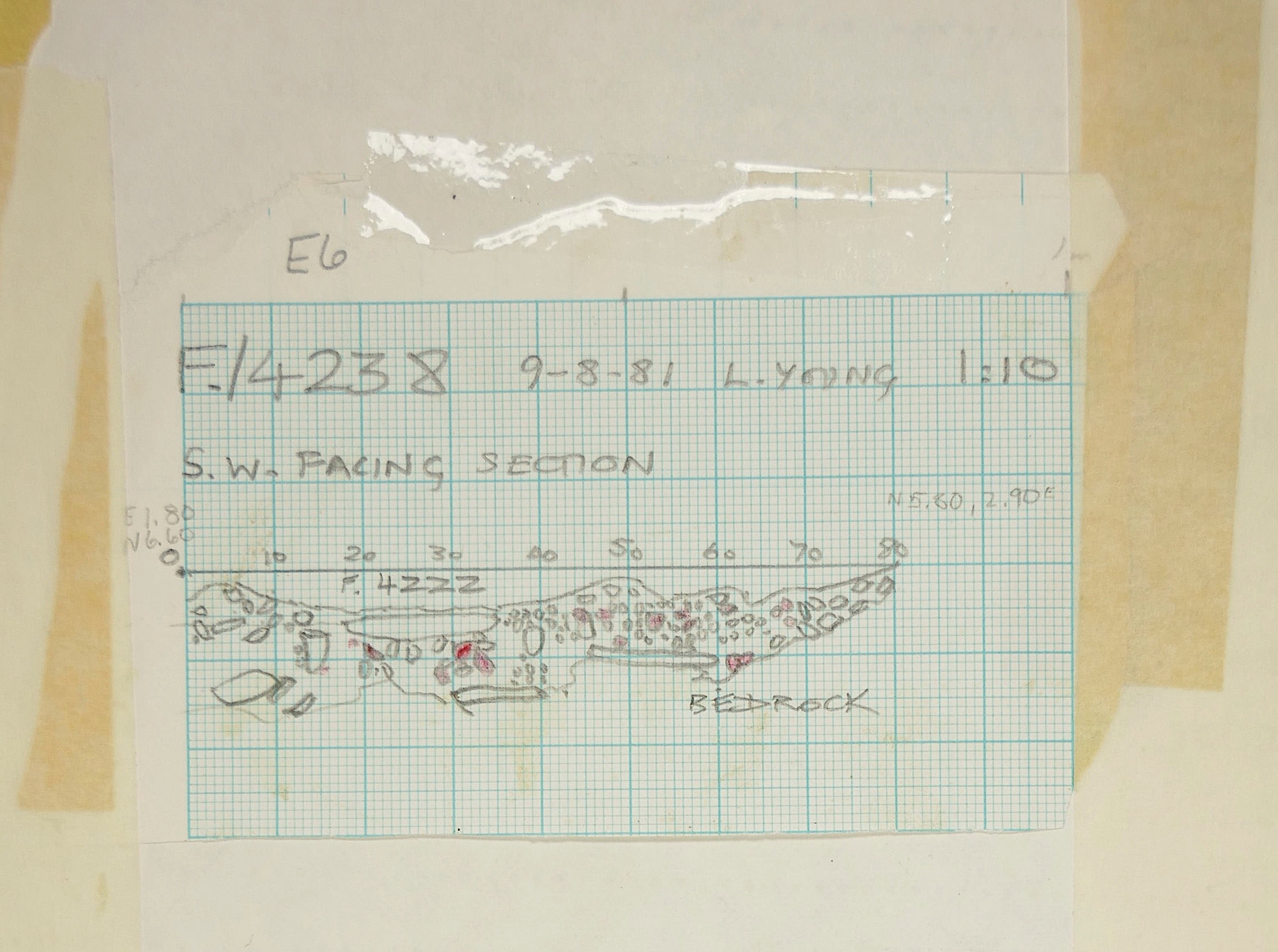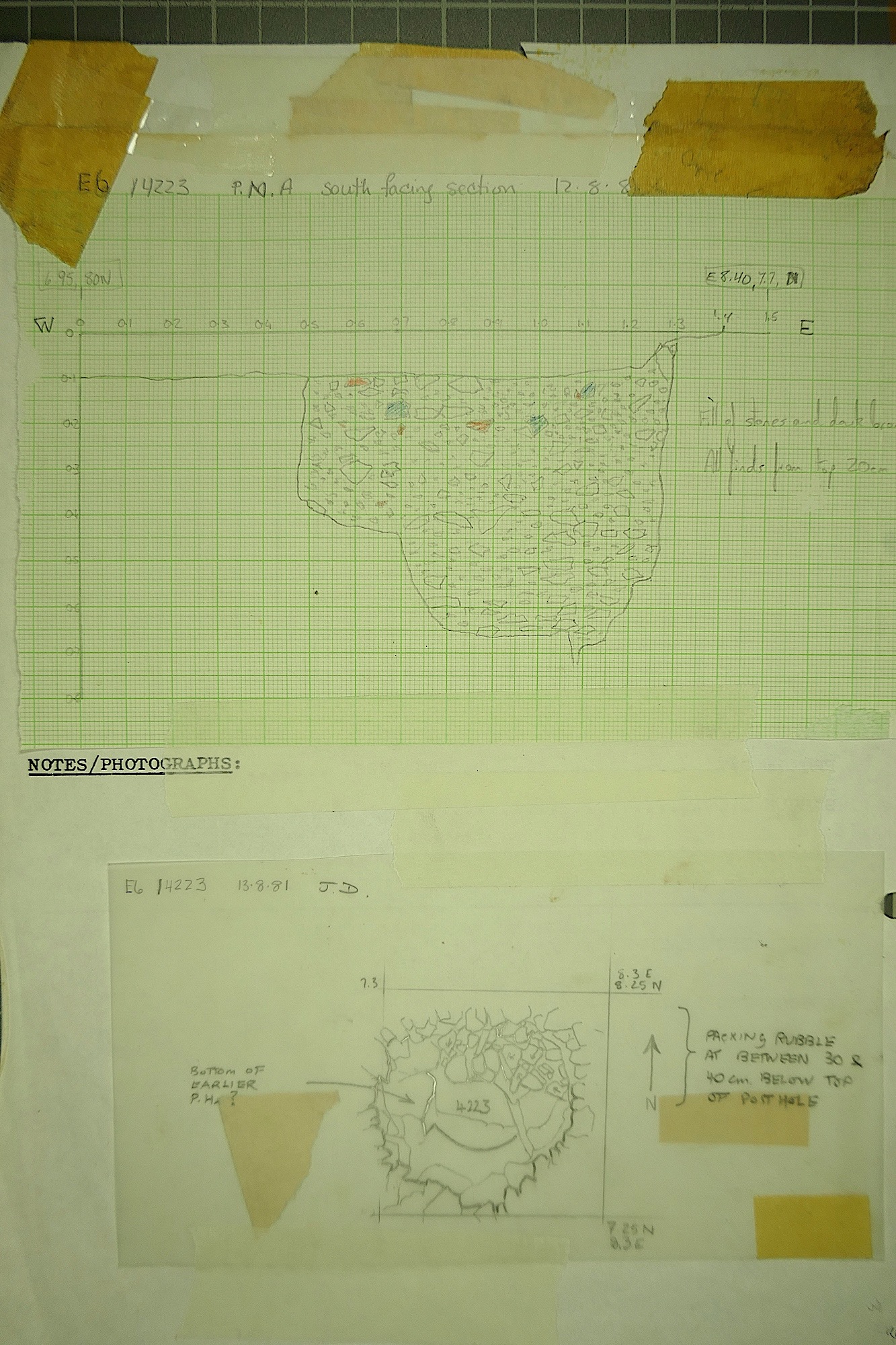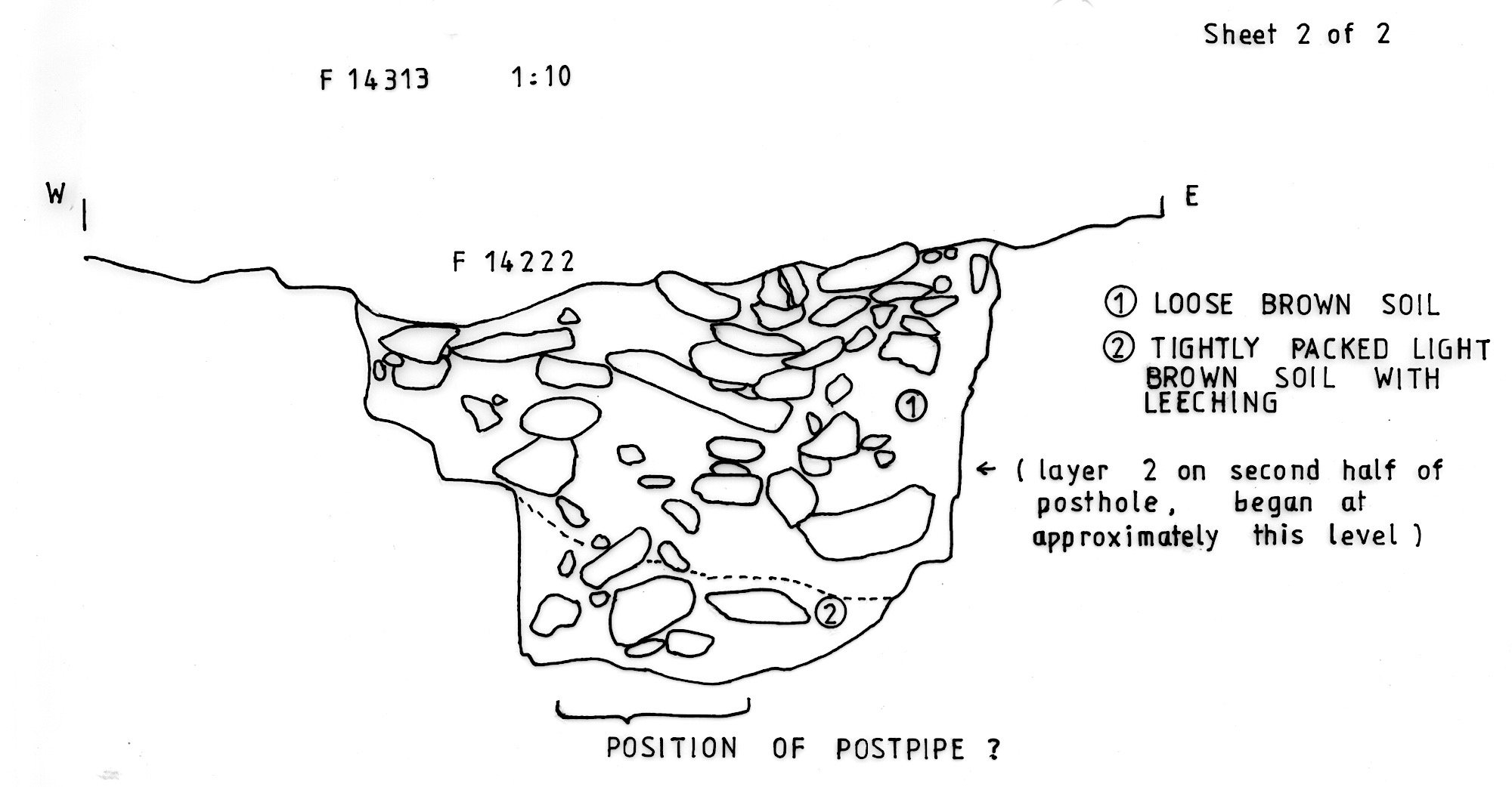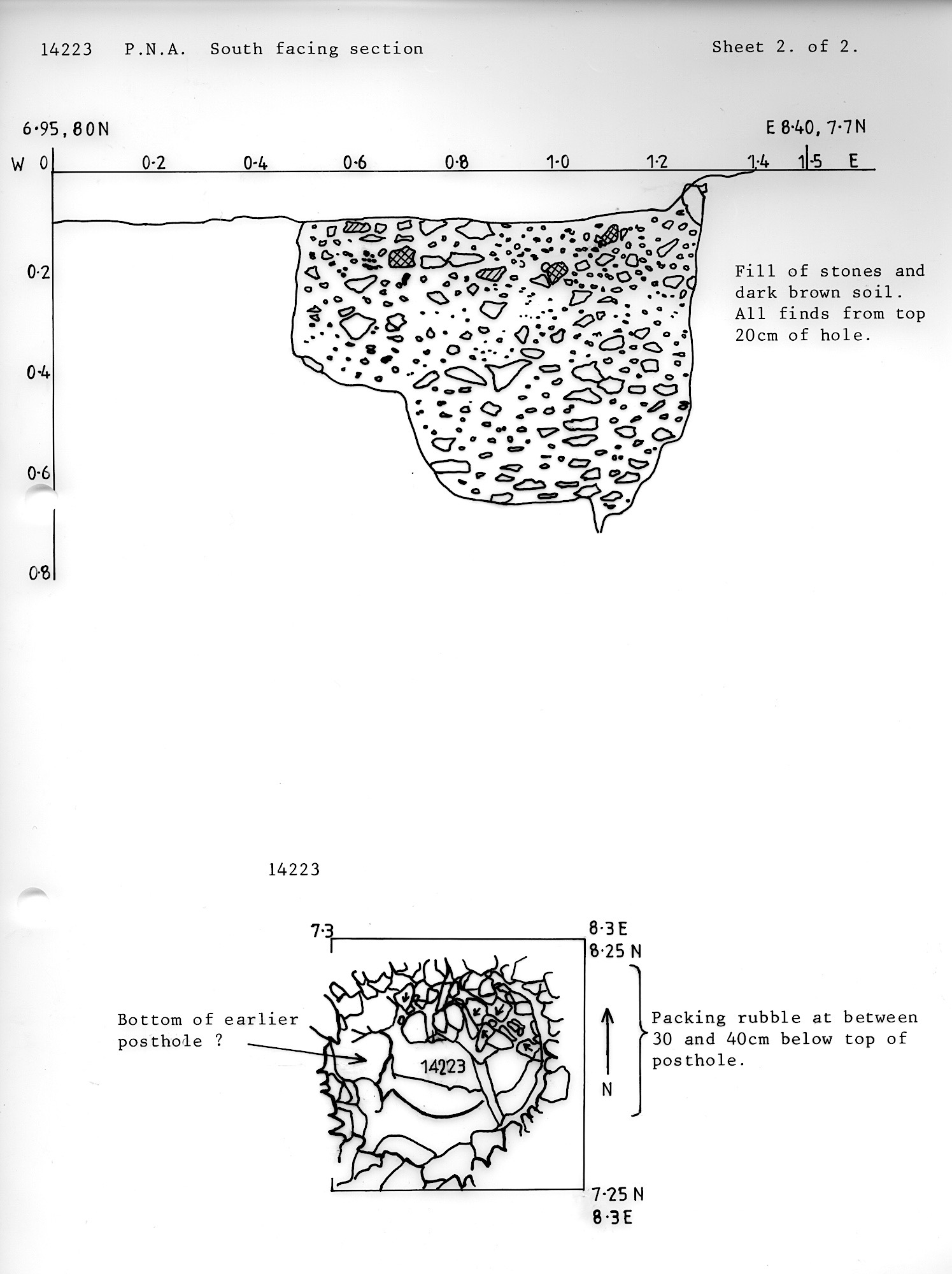 of soil with burnt stones near. Posthole? |