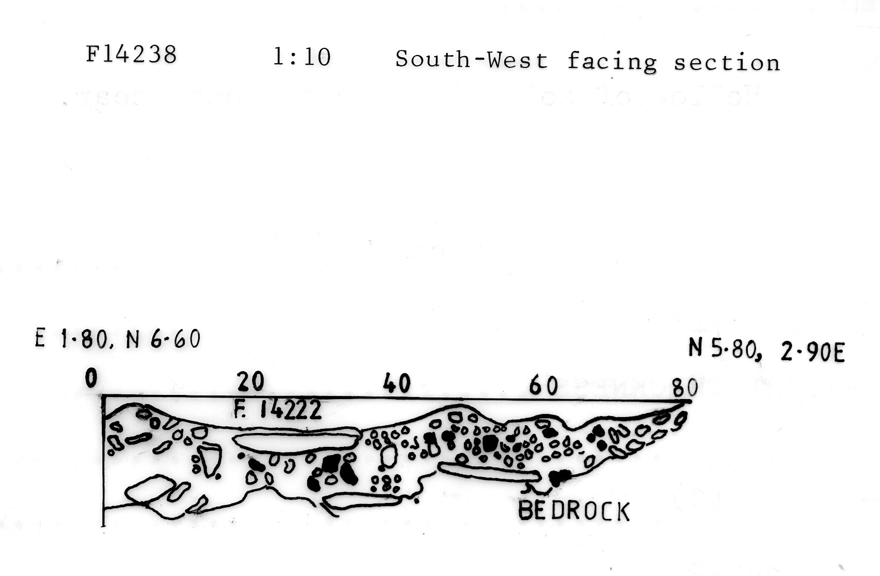 area of trapped soil, burnt & large stones |