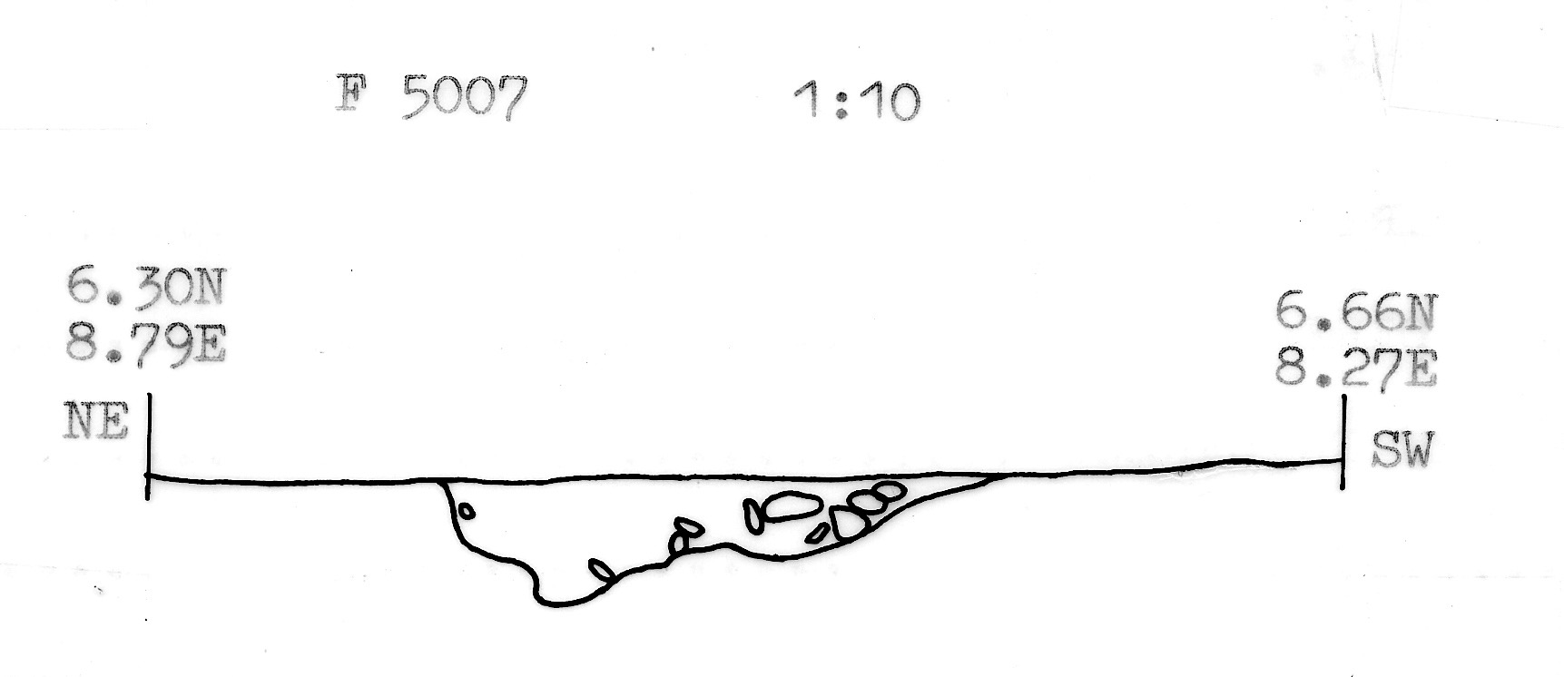 hollow of soil, thought to be a posthole, but this is probably not a feature,