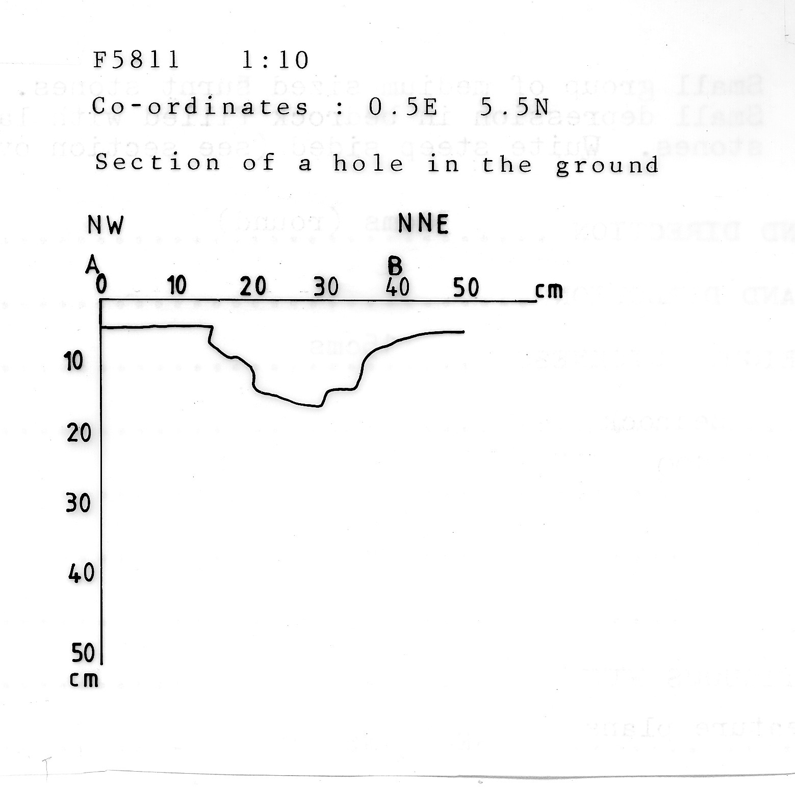 stone patch in ovoid shape NW-SE. Posthole? Rather unclear sides. A fault
