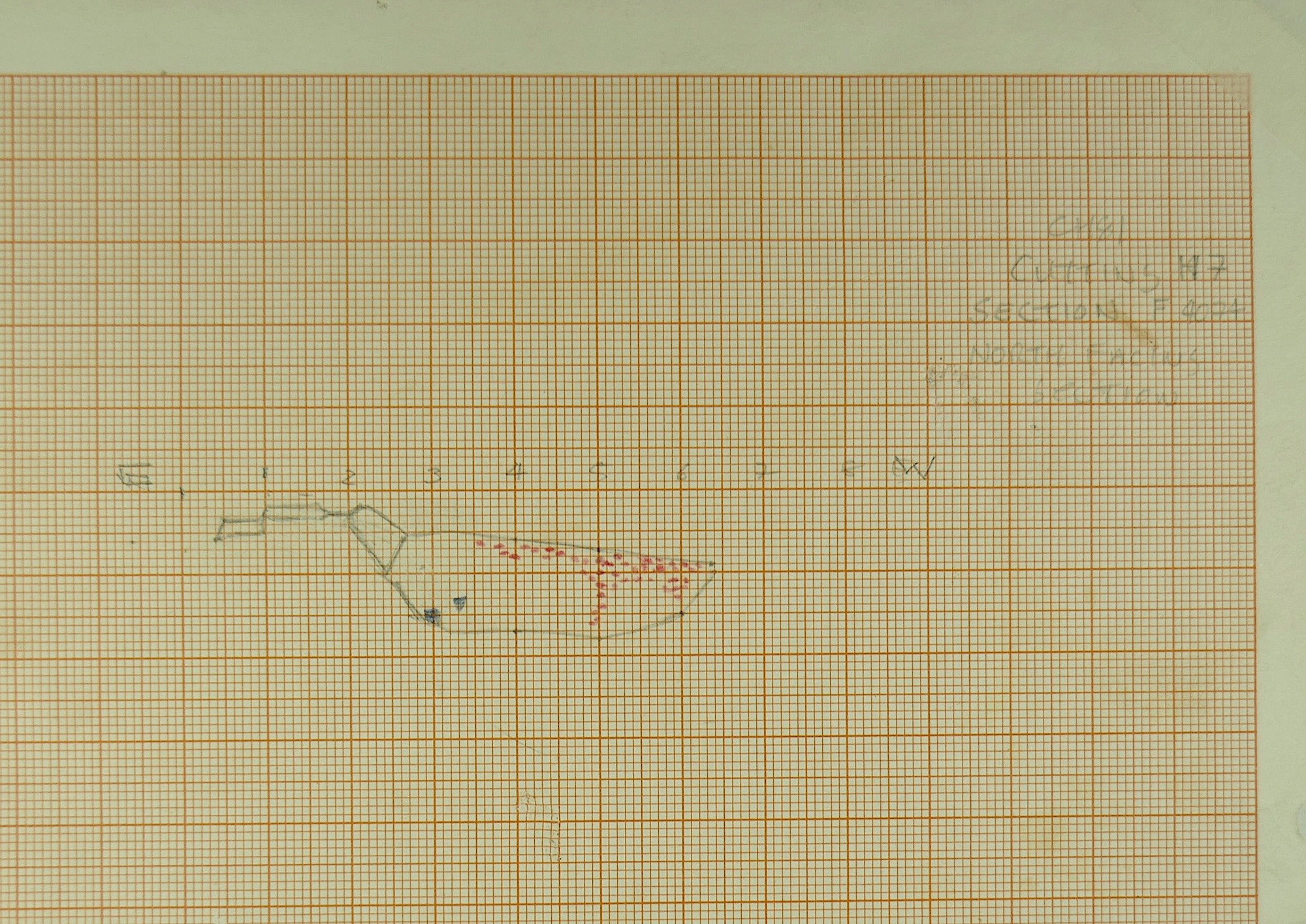 posthole. Large area of small stones/some medium stones, with burning. Medium