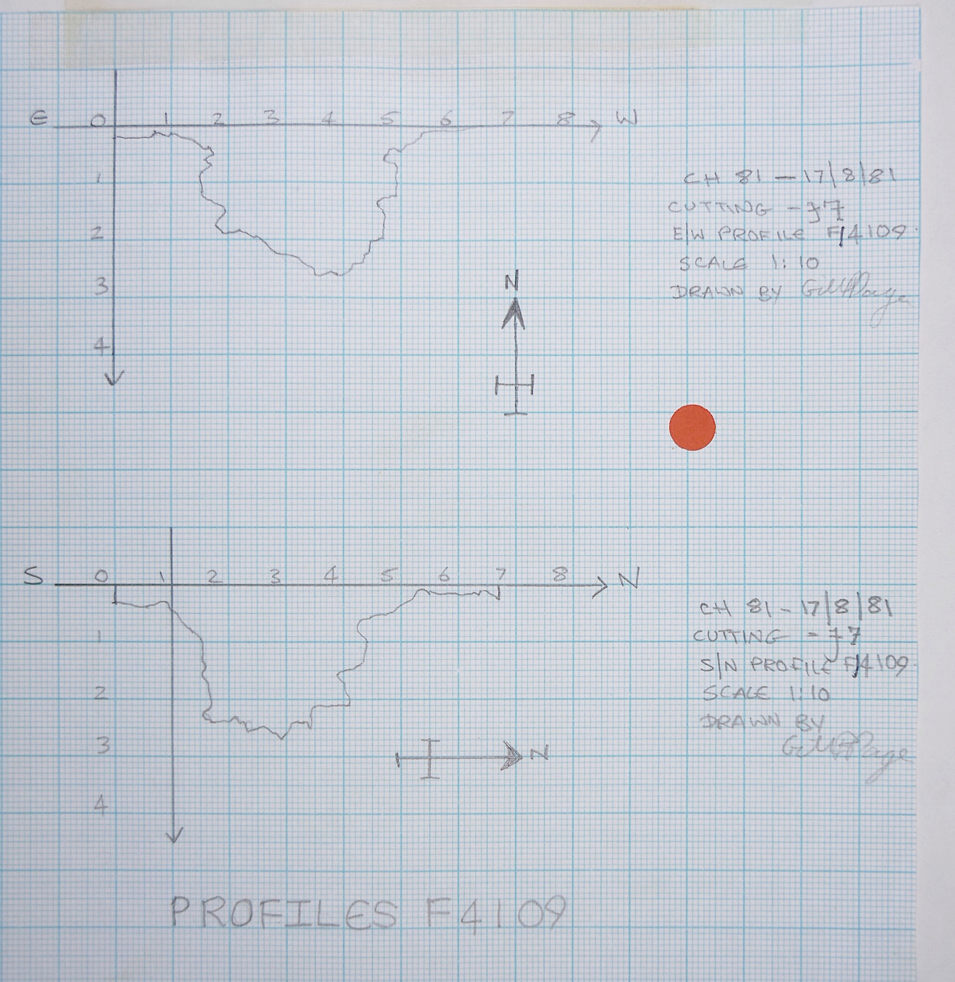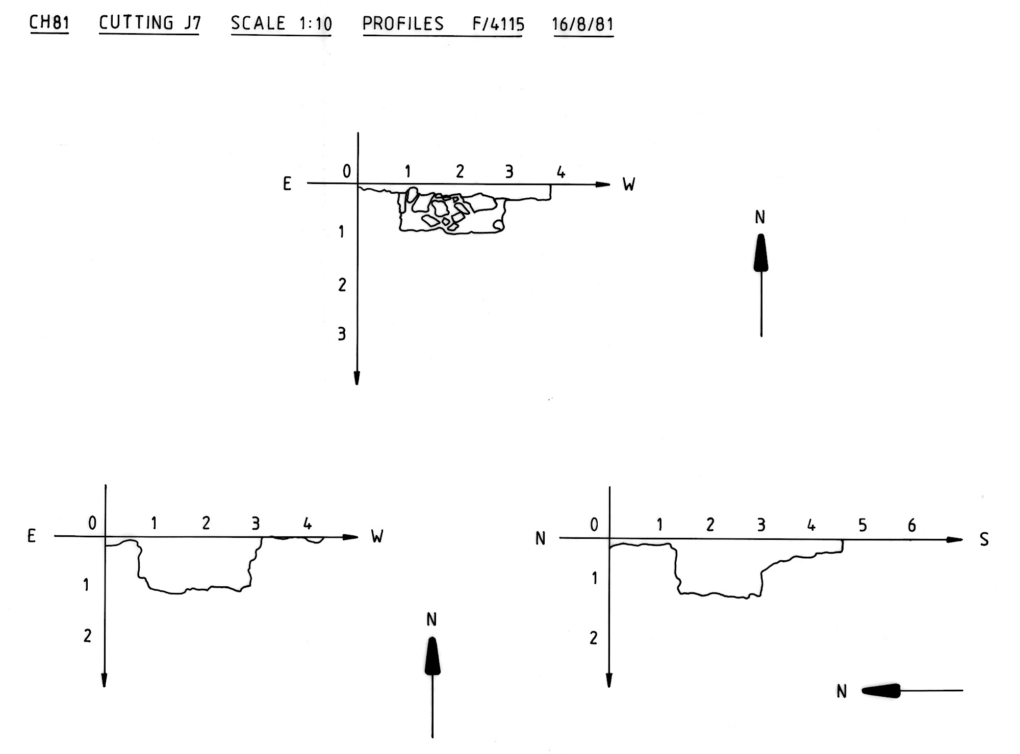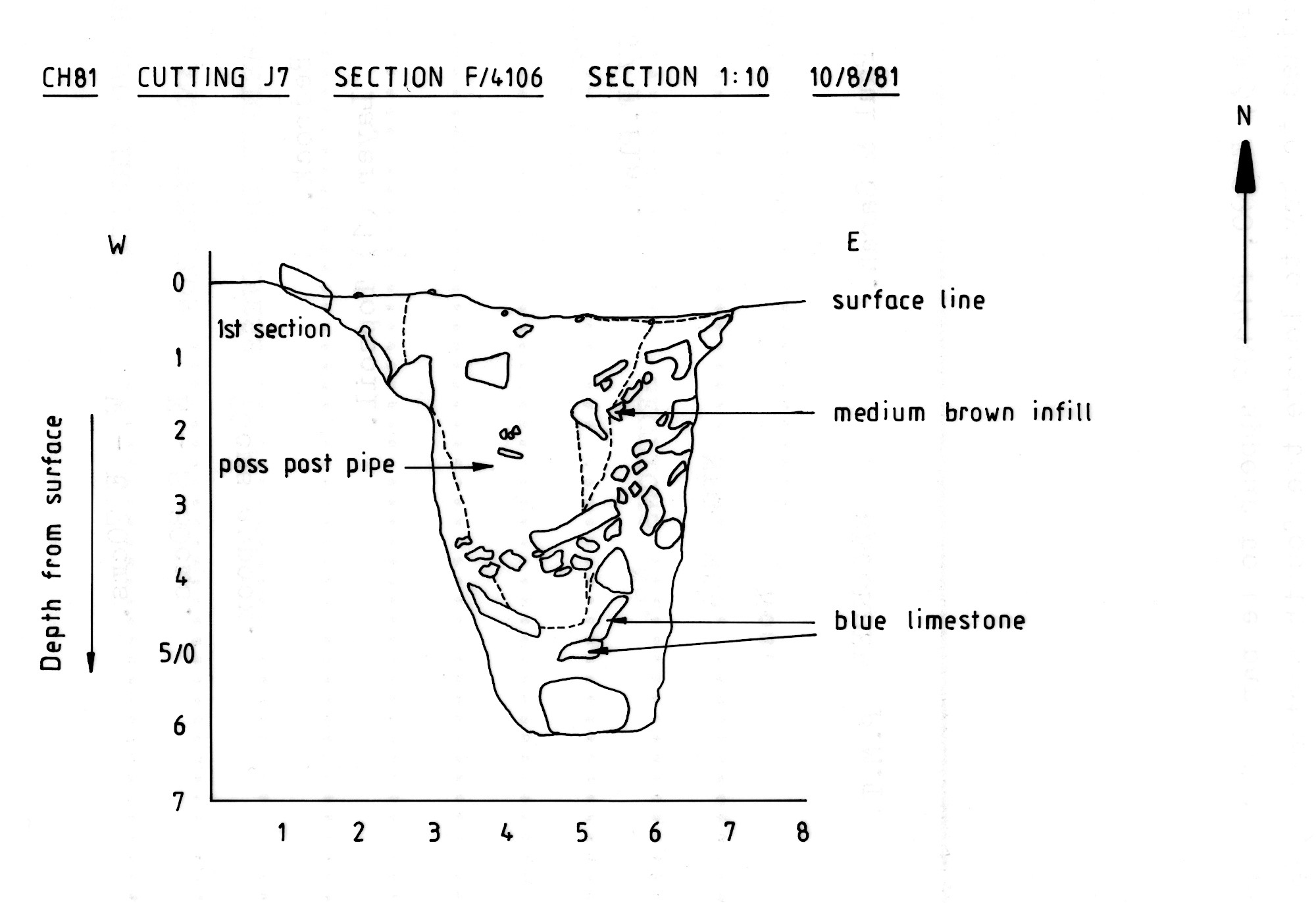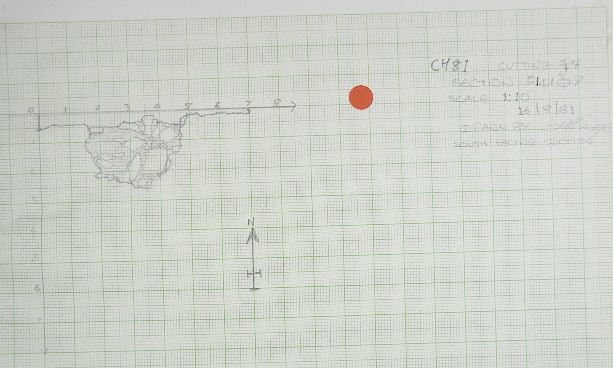 brown soil with small angular rubble. Some larger pieces evident. Many finds.