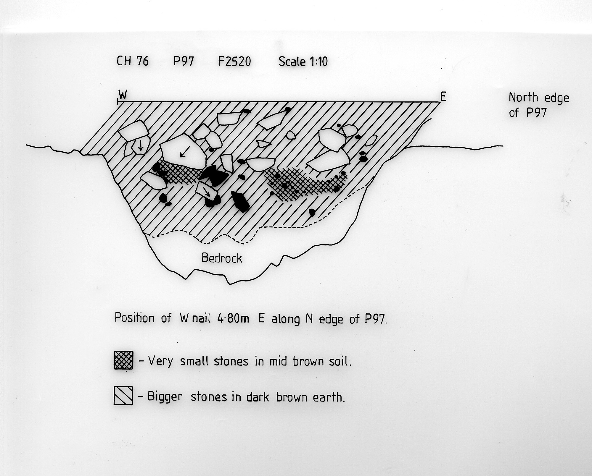 in loose stone and brown earth layer. No depth (2.3cm) and as such abandoned. |