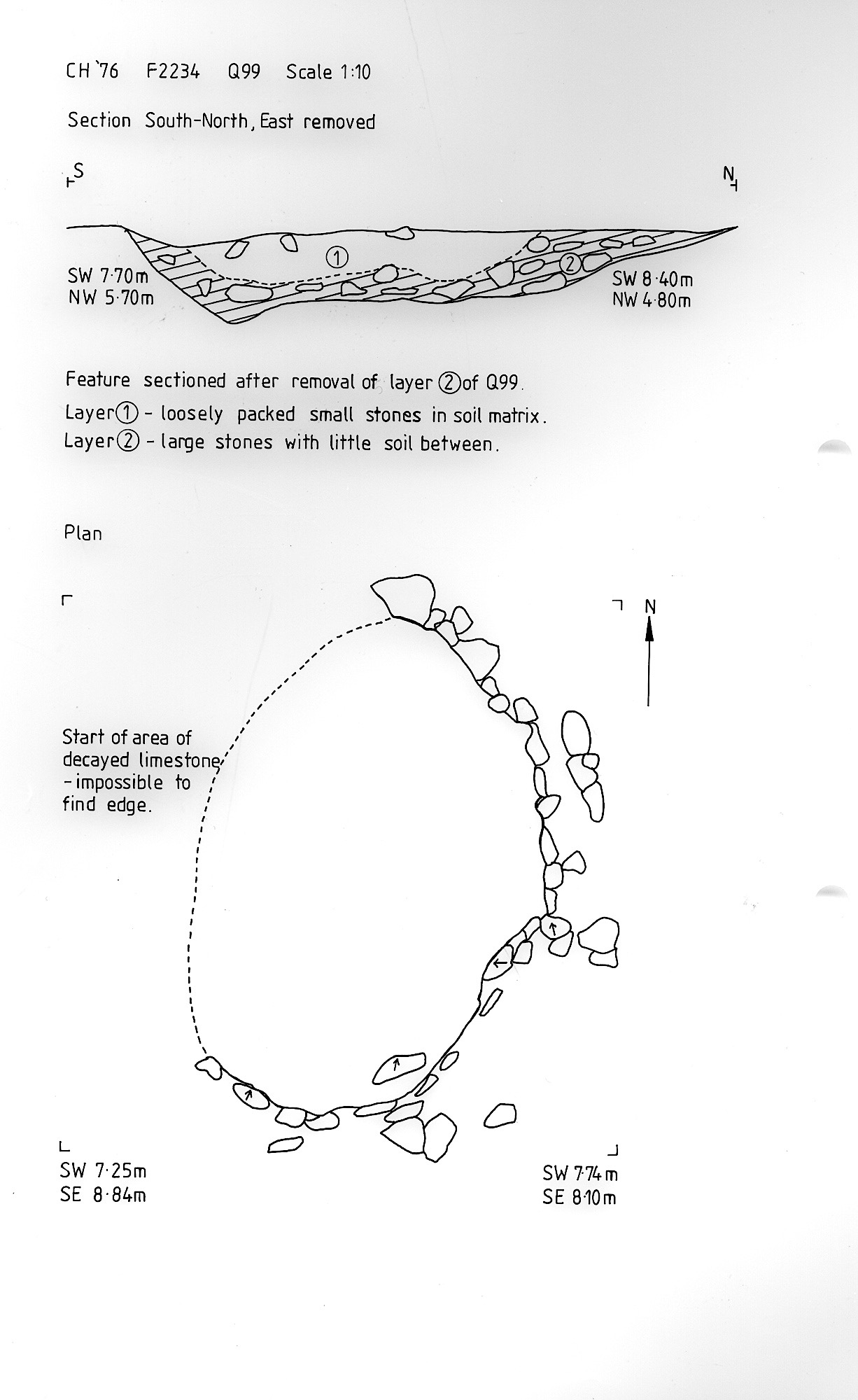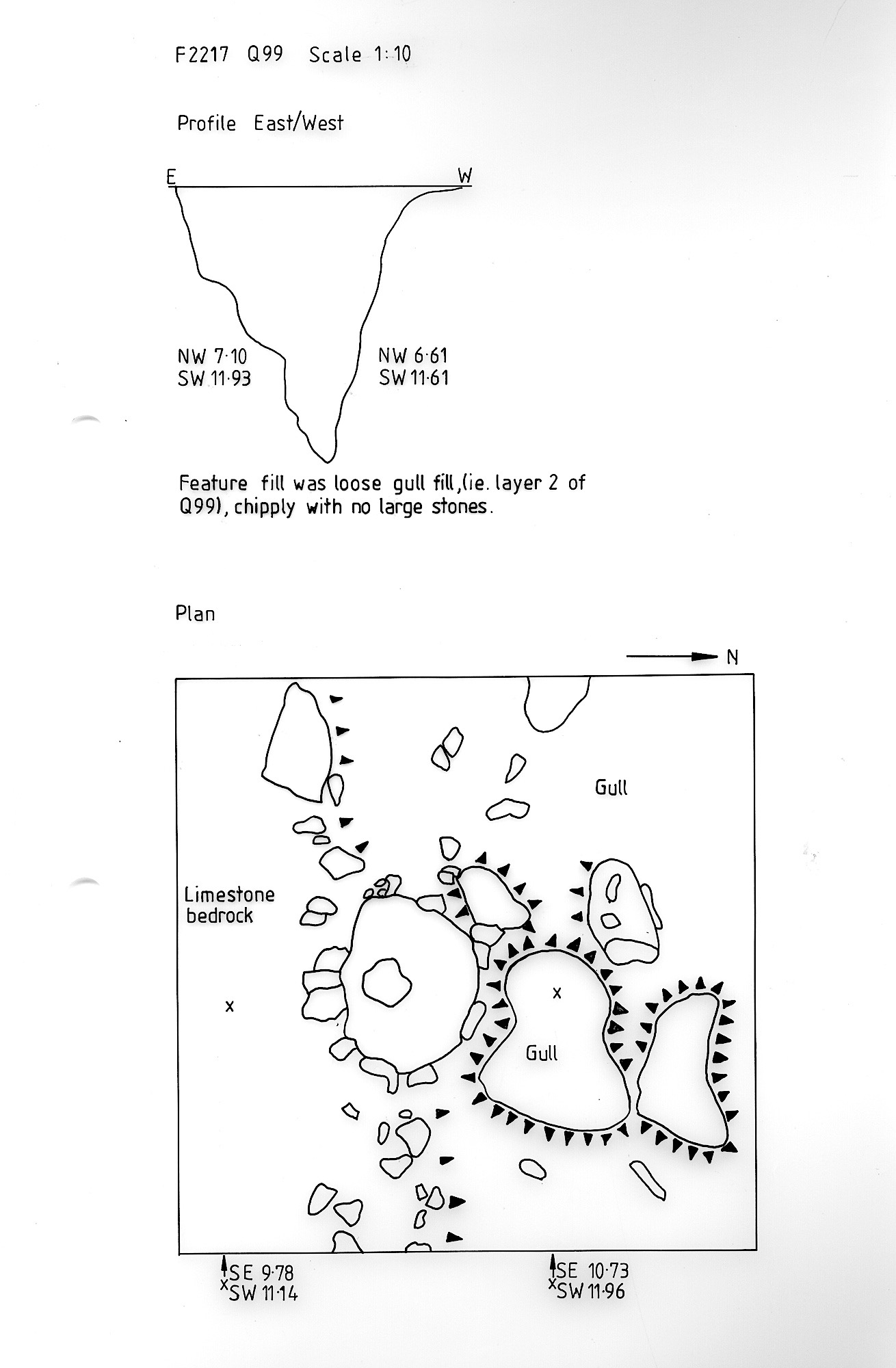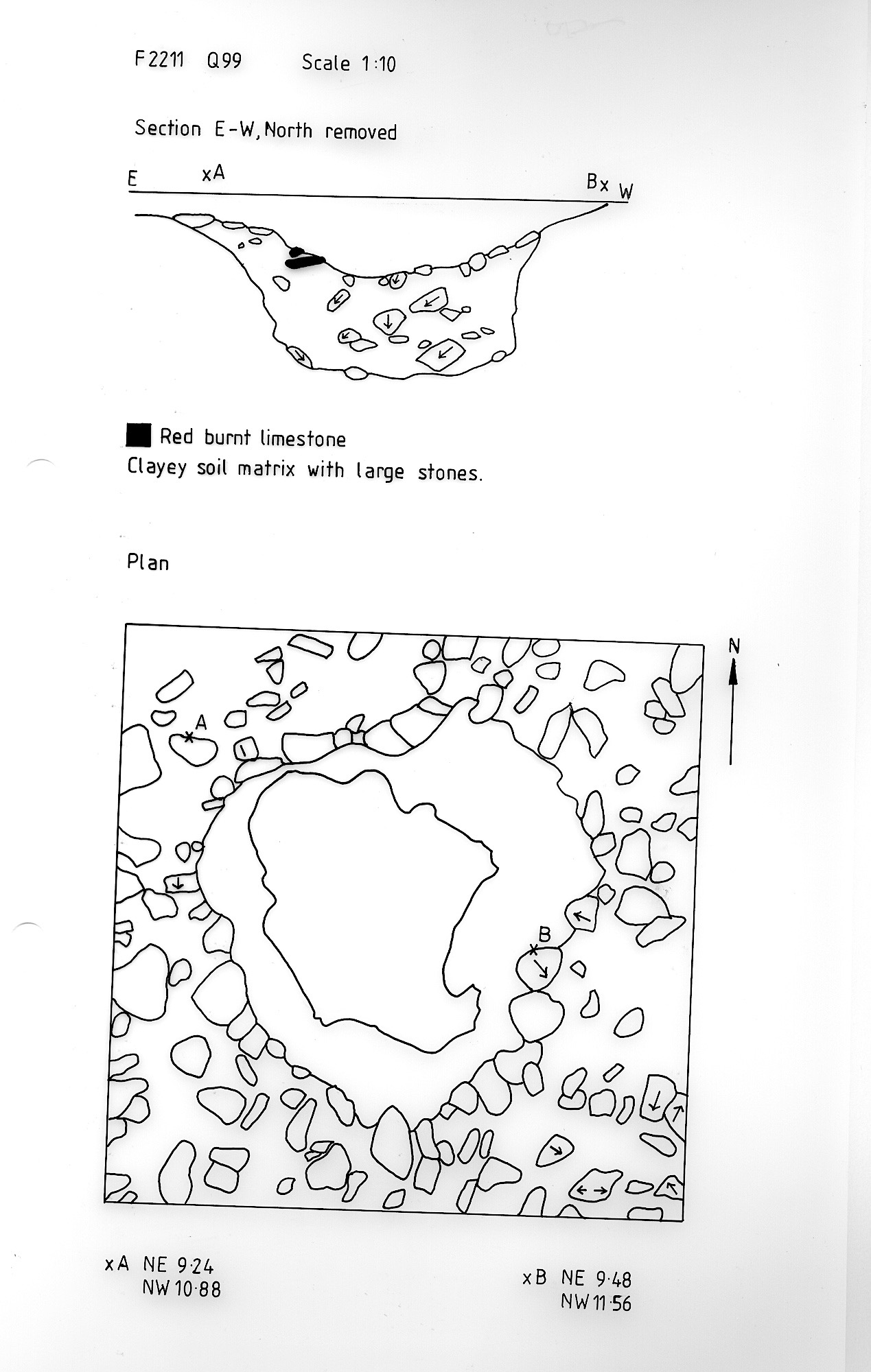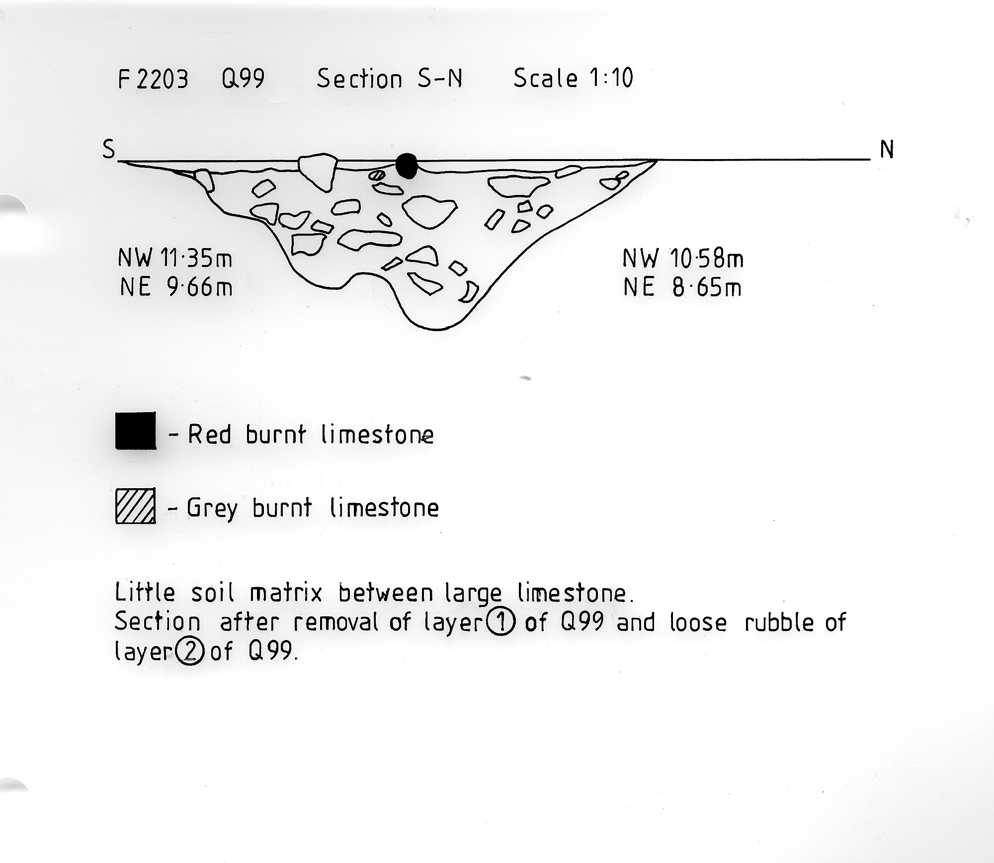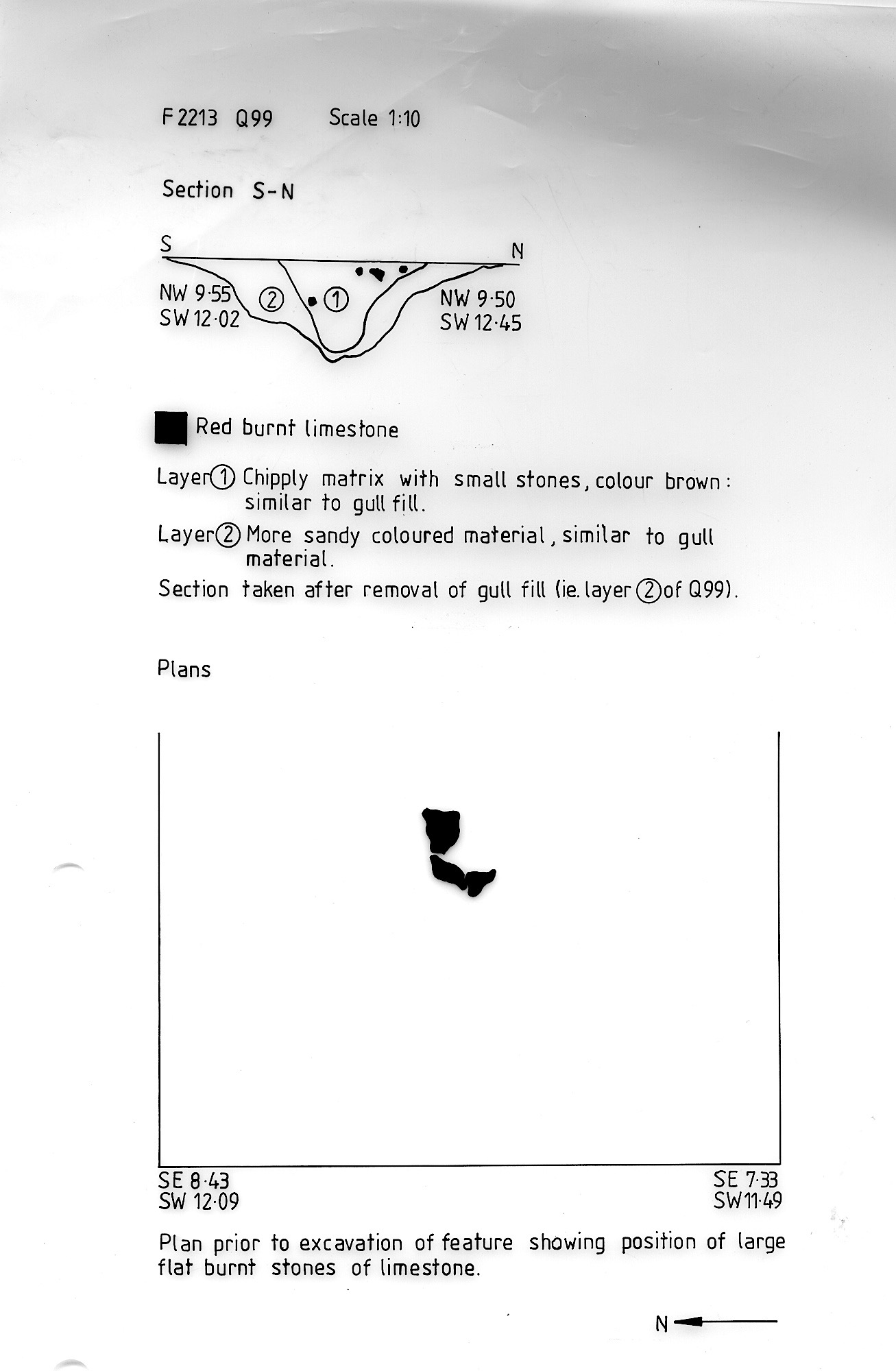 identified after removal of layer (1) of Q99. Burnt limestone evident. |