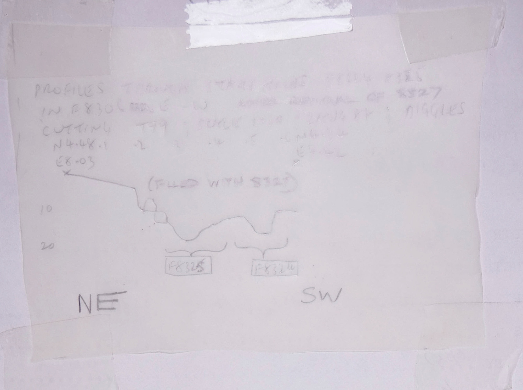 Lies S of SS line. On removal reveals a continuous band of stone. |