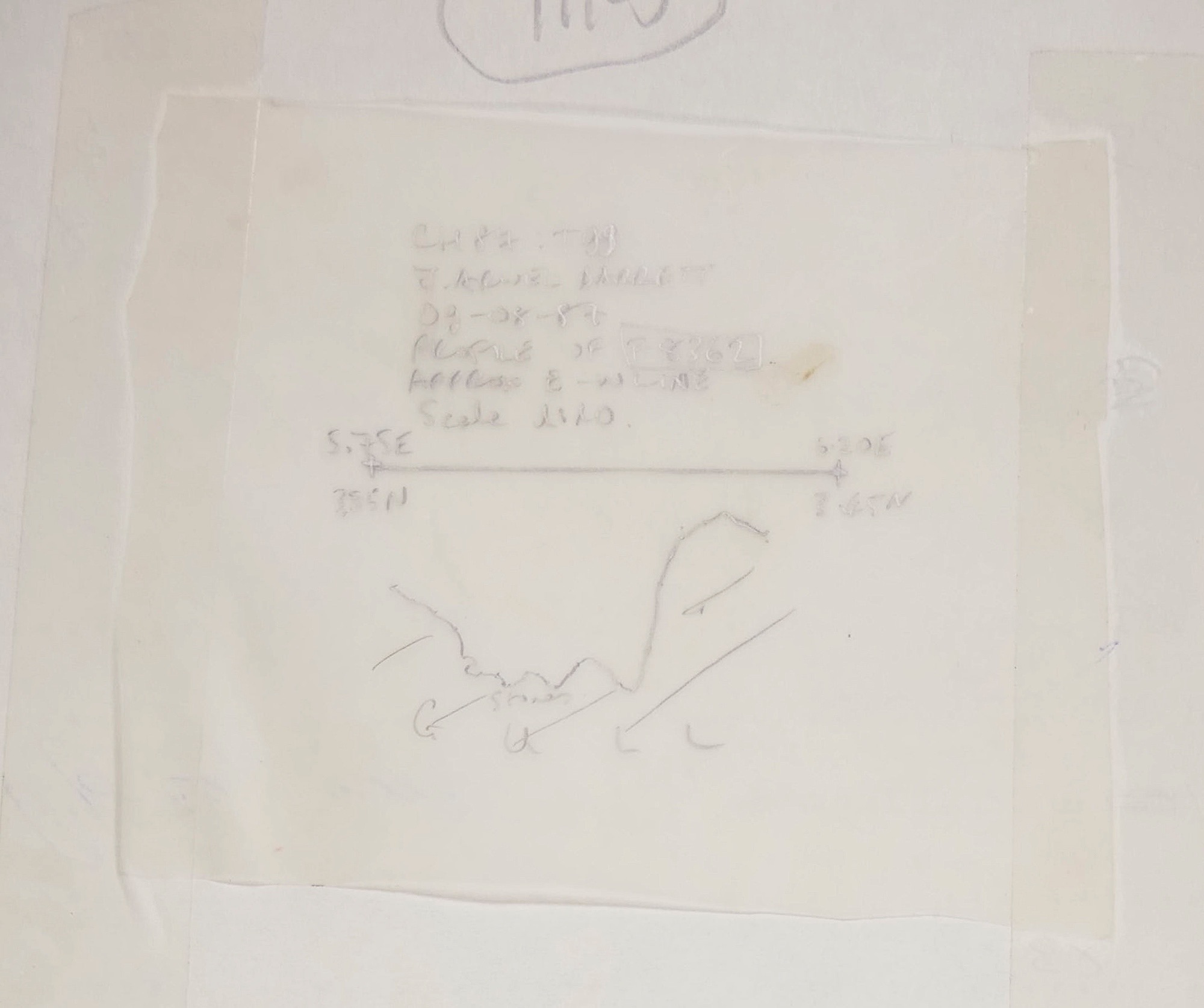 through. Terminates to S in vertical rock edge. Bedrock. |