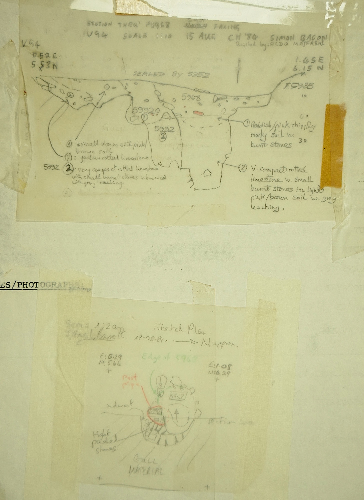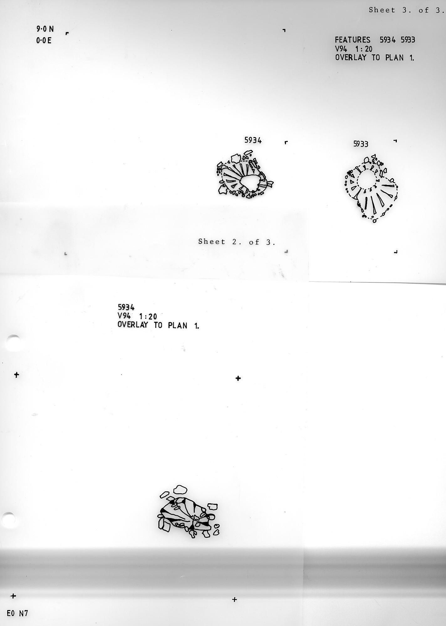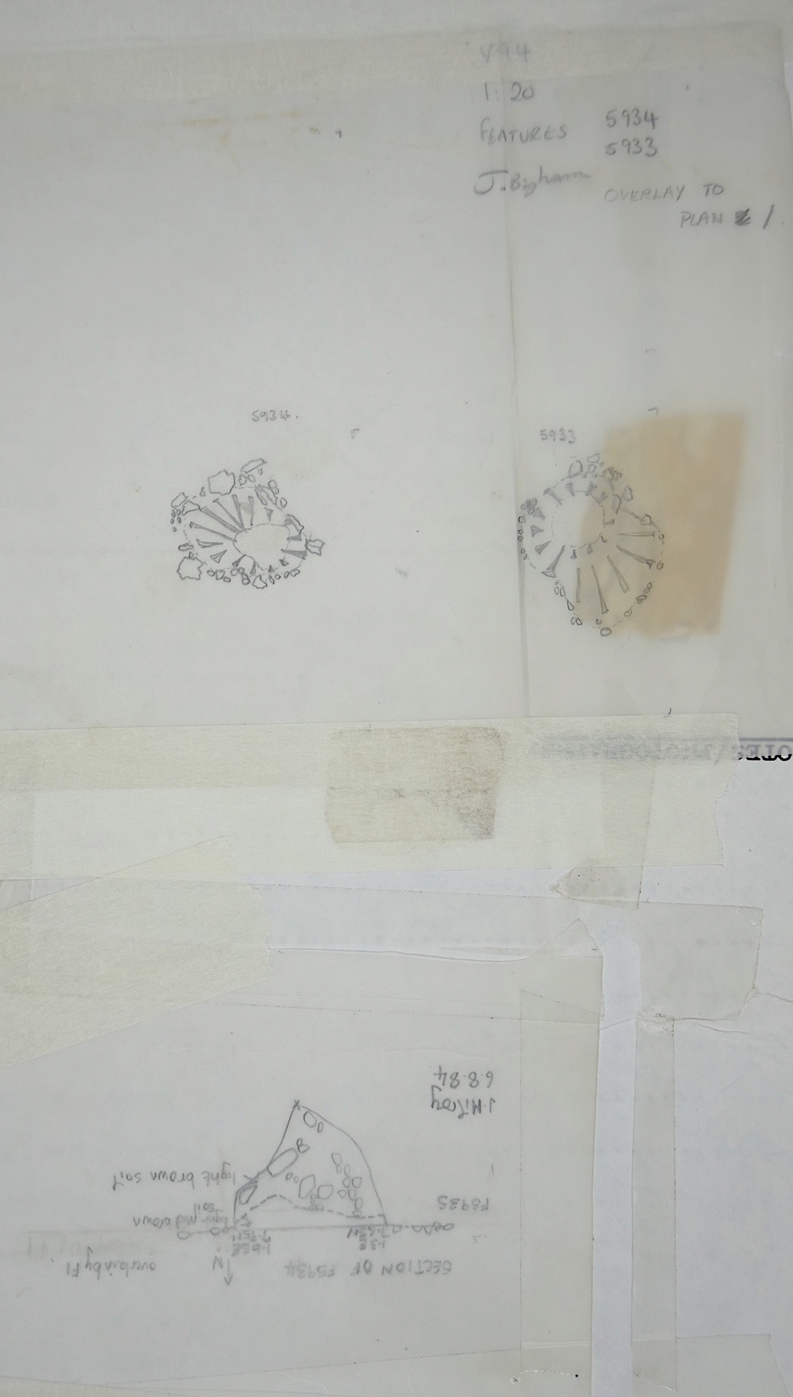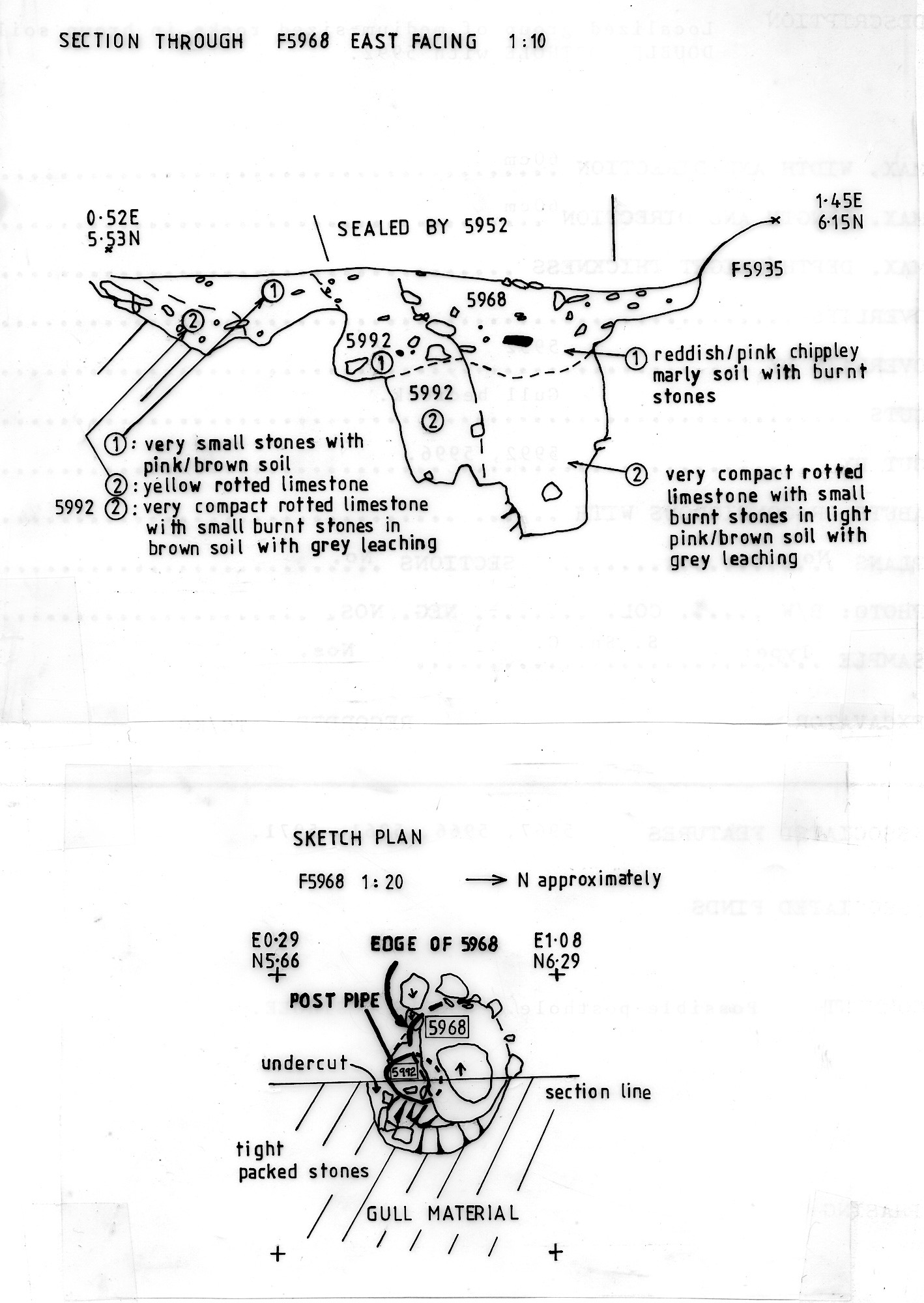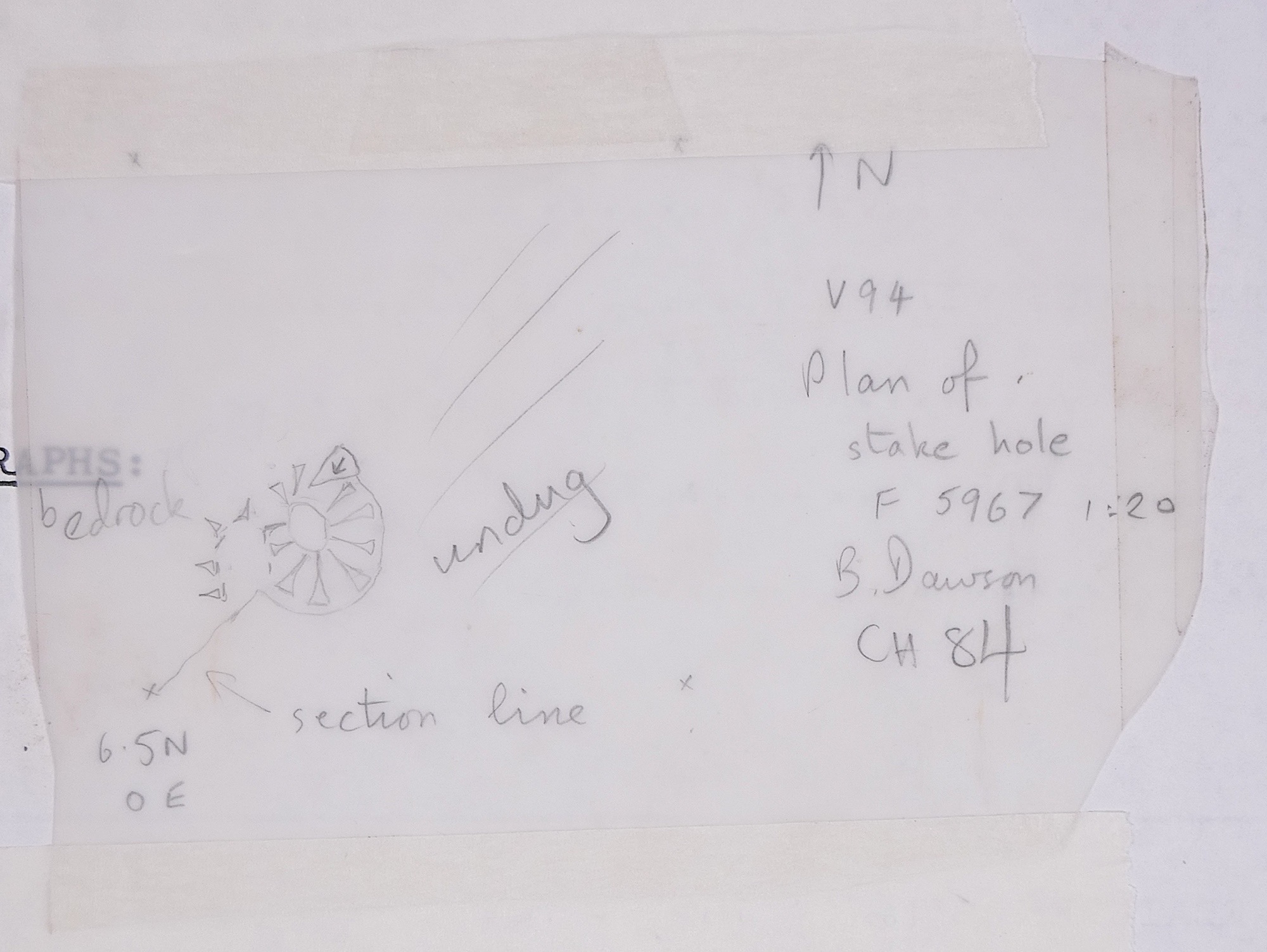 posthole with F05992. Localised group of medium-sized rocks in brown soil |