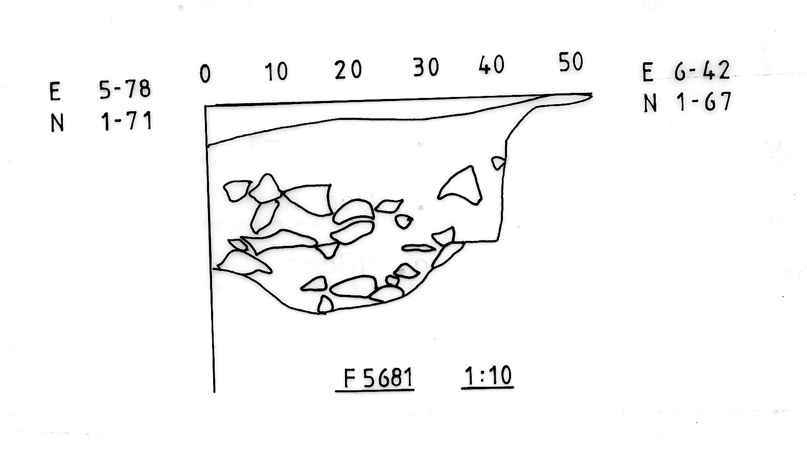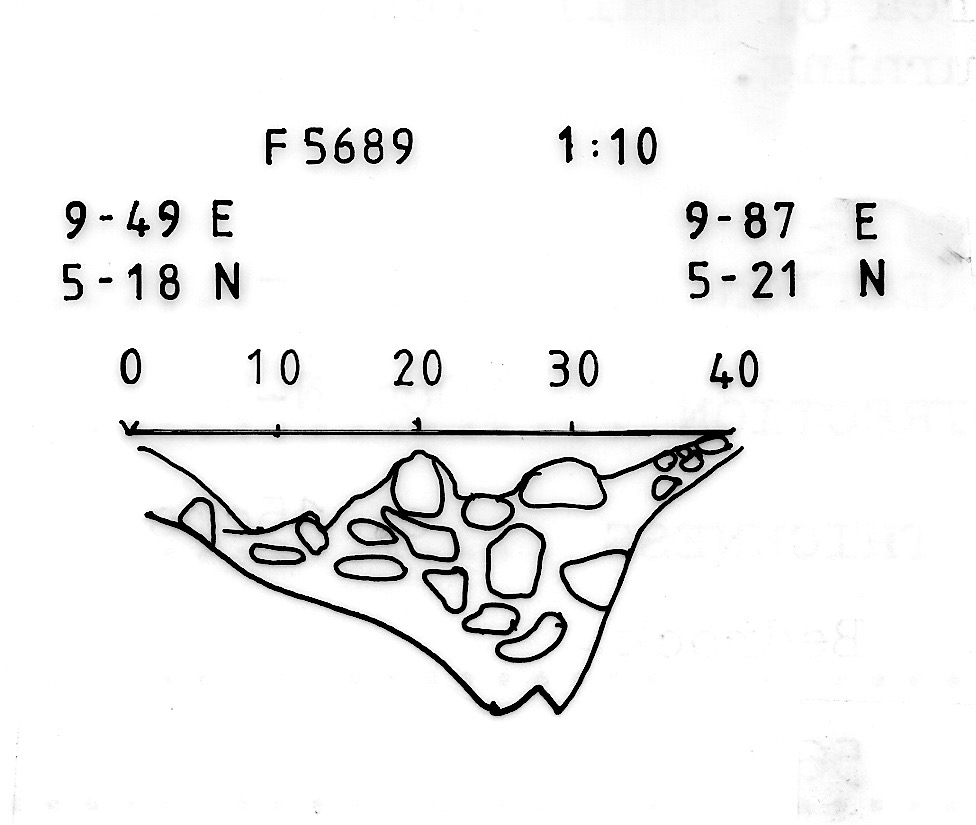 | F05686 | V95 | Concentration of burning (small stones) with some vertical stones in area of medium rubble - extends roughly W-E in a narrow band. Possible Post hole. Layer (1): Post pipe - fill of mid brown soil with little pea grit. Layer (2): Post pipe packing. Disturbed area had principally stones with a little soil, edges poorly defined. Finds: flint, charcoal and bone. | 1 | 1 | 1 | 7.6 | 1.1 | 30cms N-S | 1.3m W-E | c26 cms | 2 | Bedrock | F05661 | Bedrock | 1 | 1 | 1 | 1 | 1 | http://www. | http://www. | http://www | http://www | http://www | |||||||||||||||||||||||||||||||||||||||||||||||||||||||||||||||||||||||||||||||||||||||||||||||||||||||||||||||||||||||||||||||||||||||||||||||||||||||||||||||||||||||||||||||||||||||||||||||||||||||||||||||||||||||||||||||||||||||