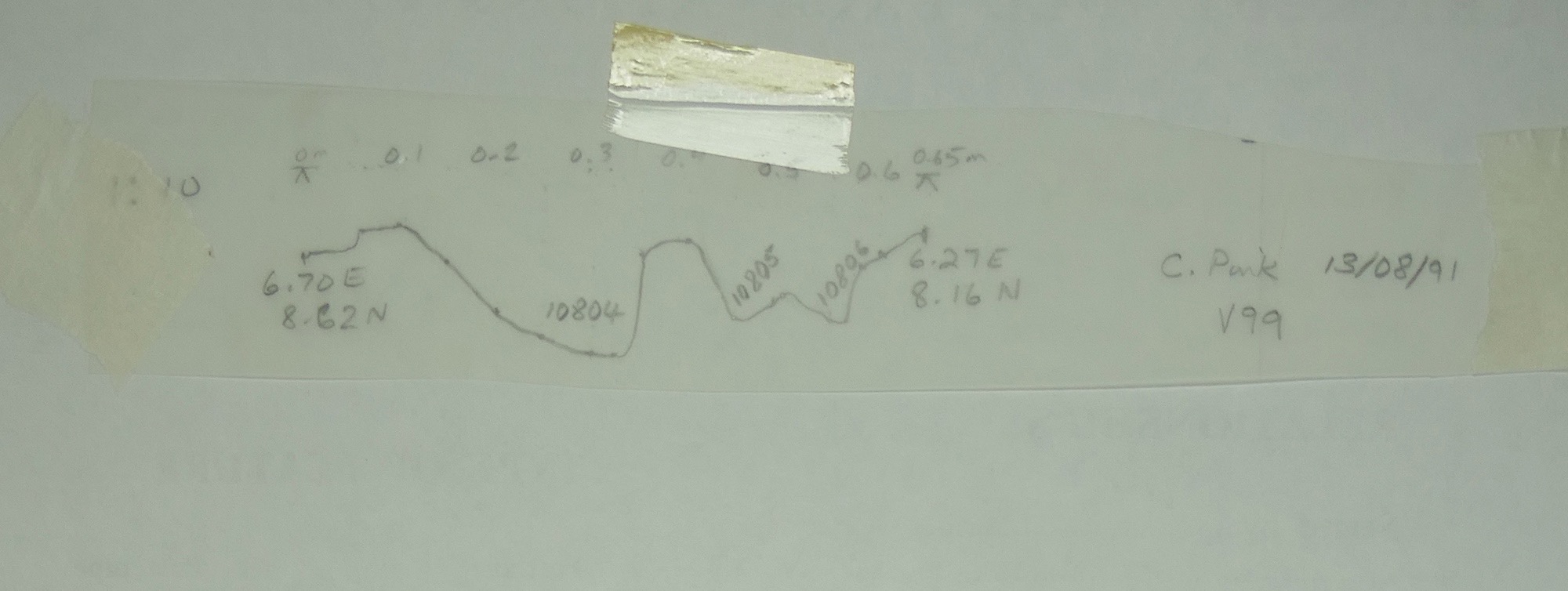 area. Occ burnt medium stones occurred. F10599 extends across to the under