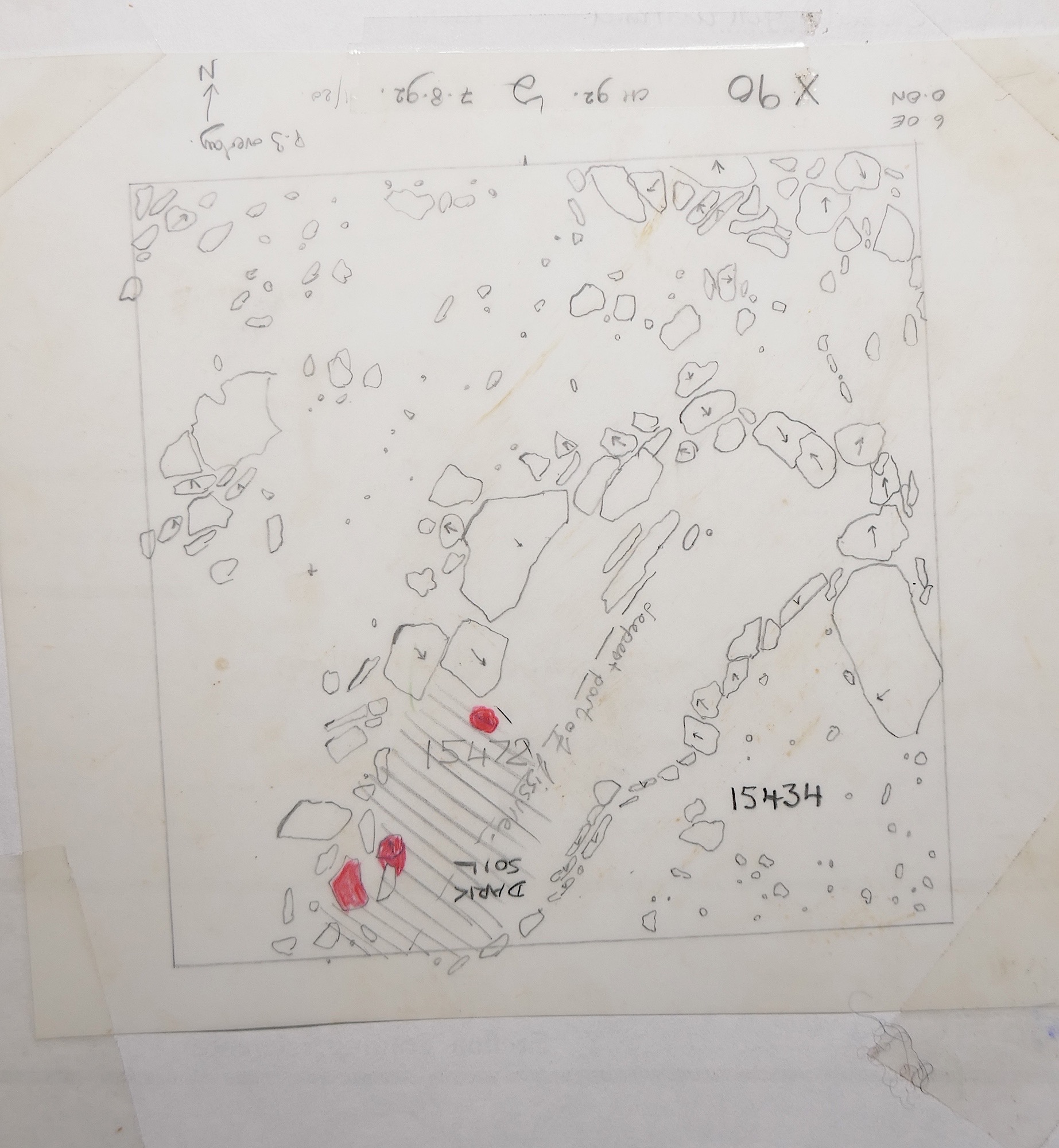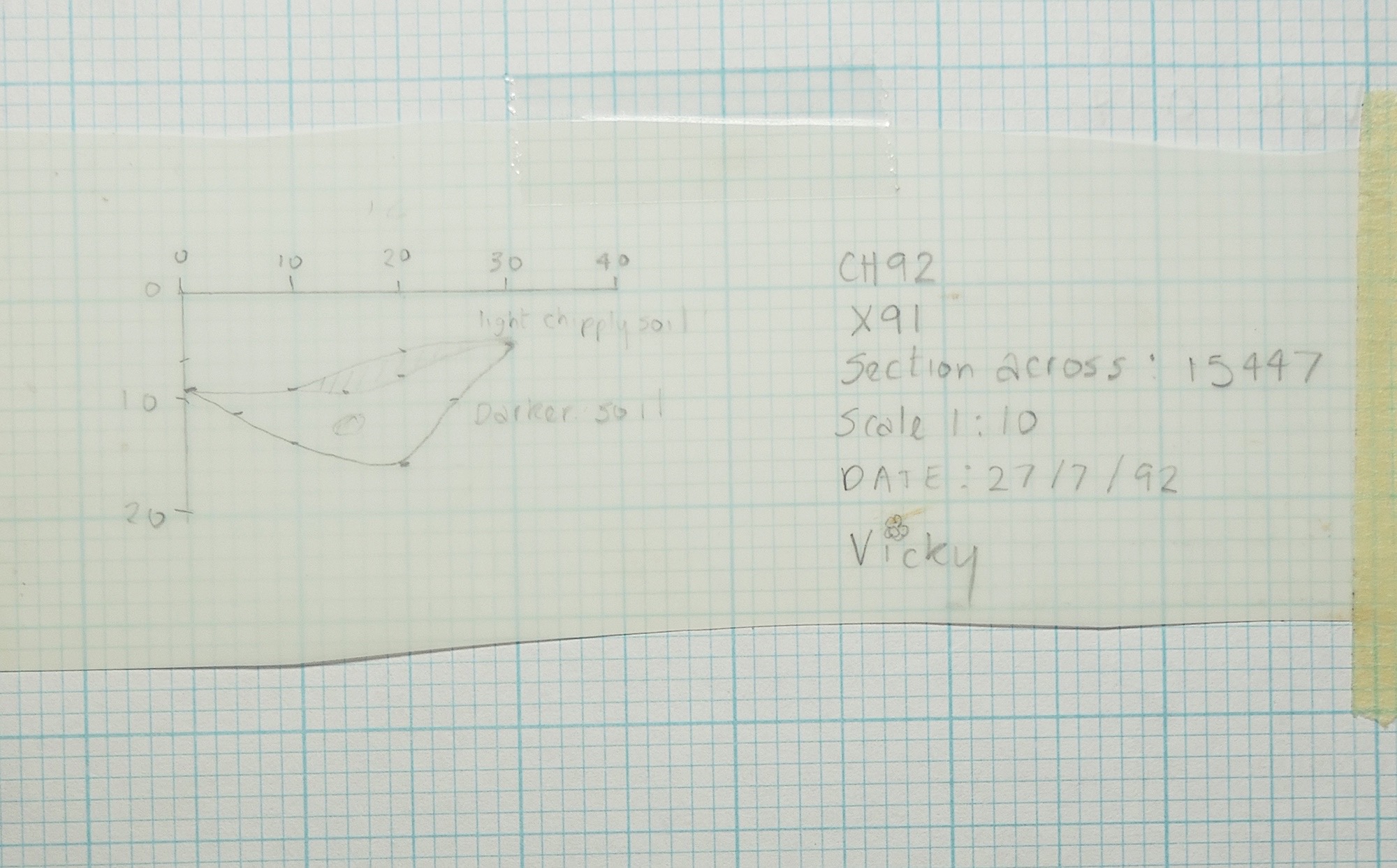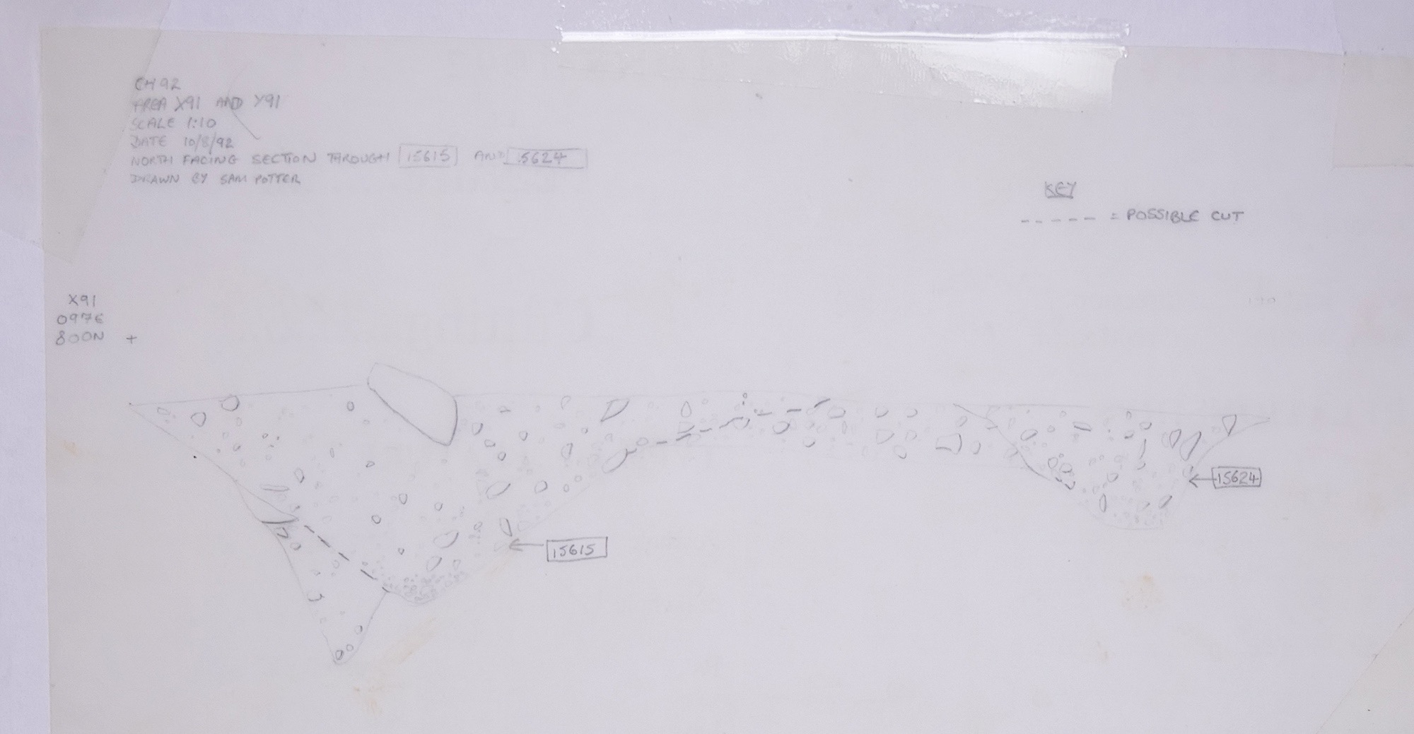 of brown soil and small stones in NW part of X91. On excavation this turned