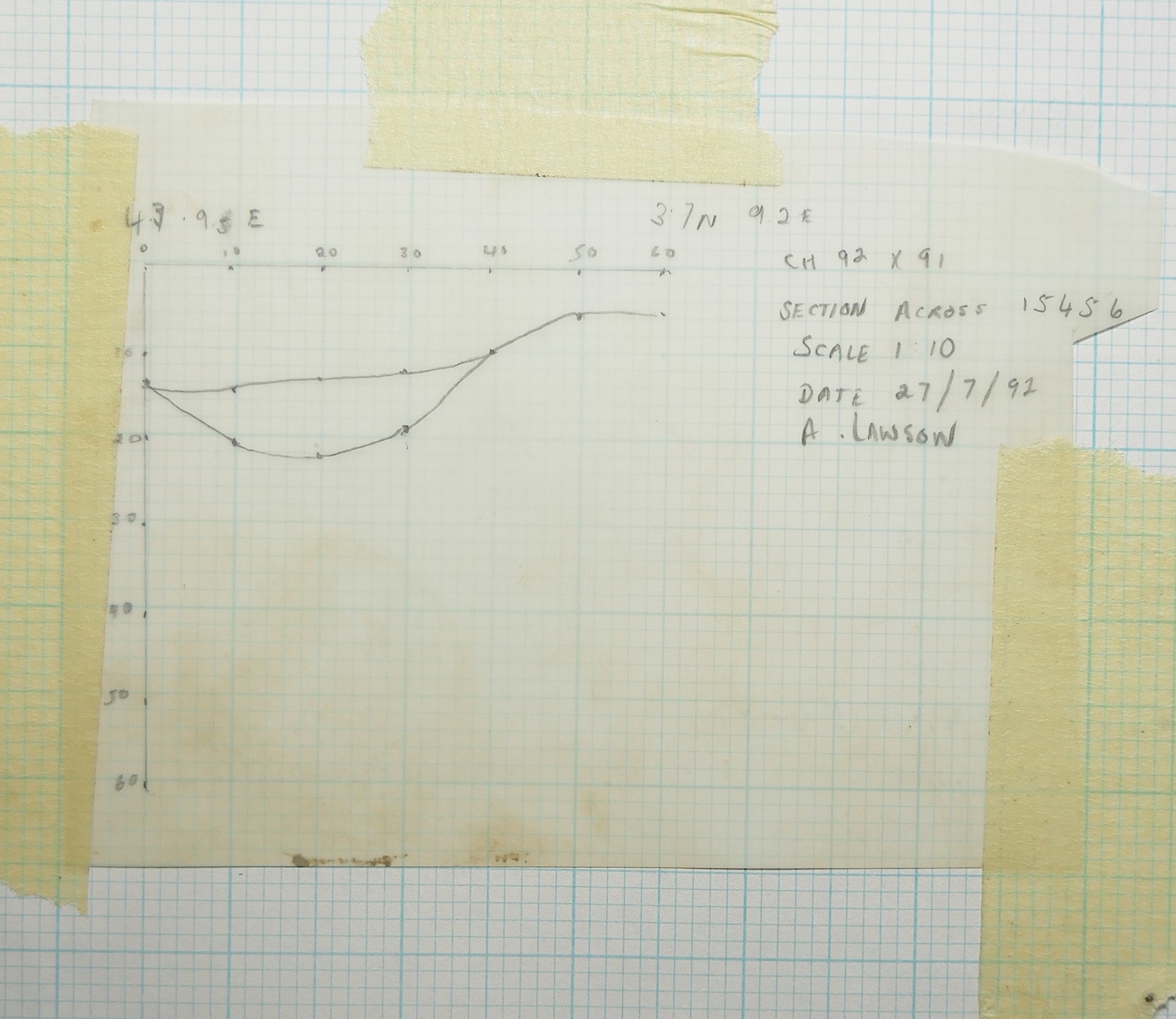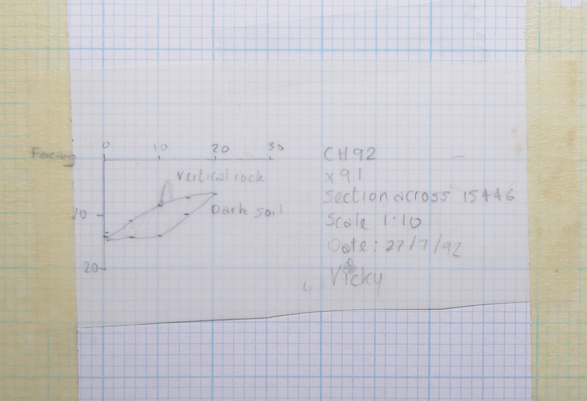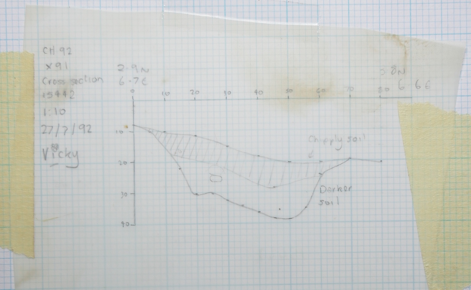 of brown soil and small stones in NW part of X91. On excavation this turned