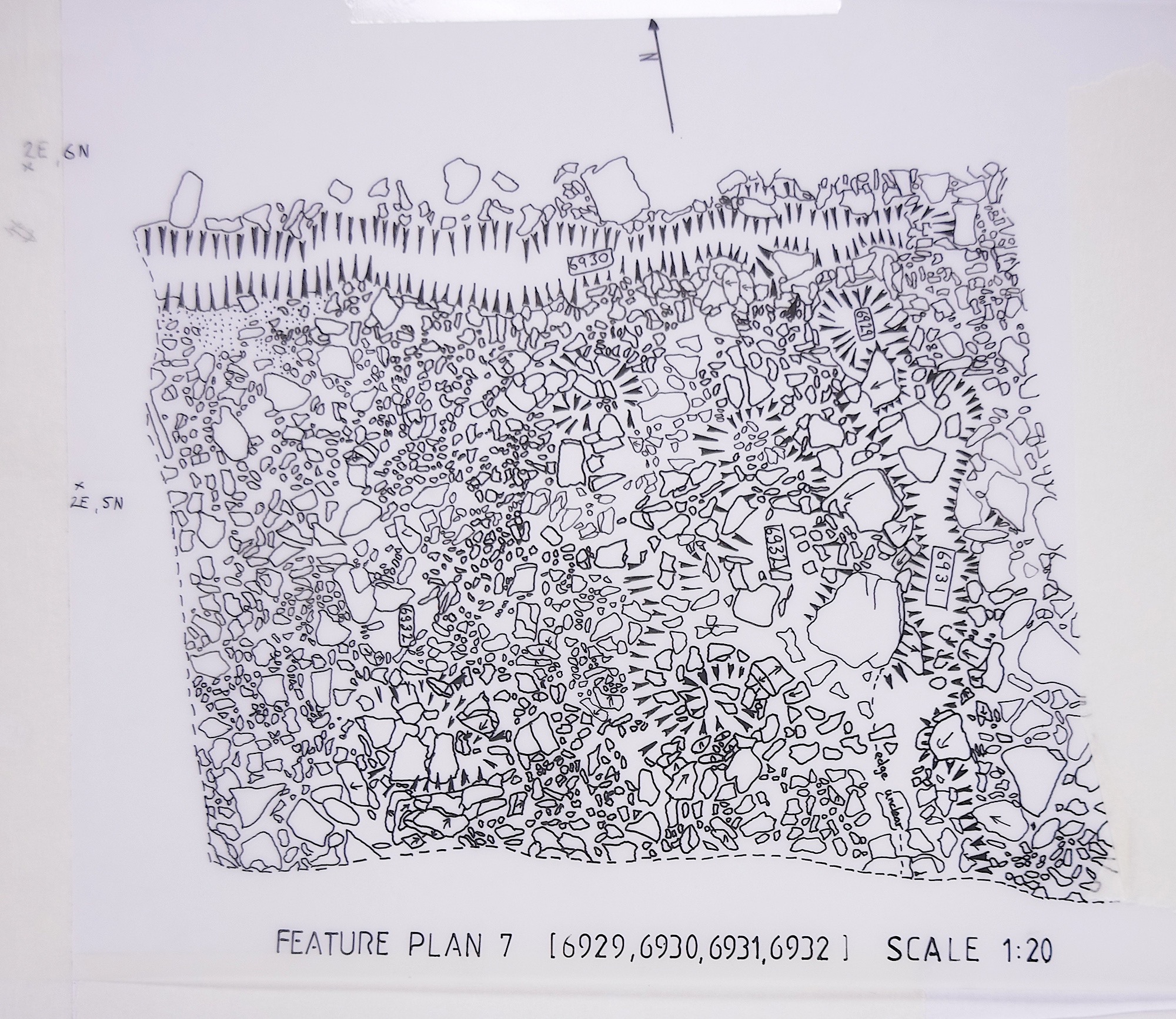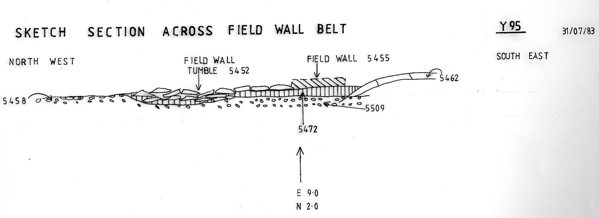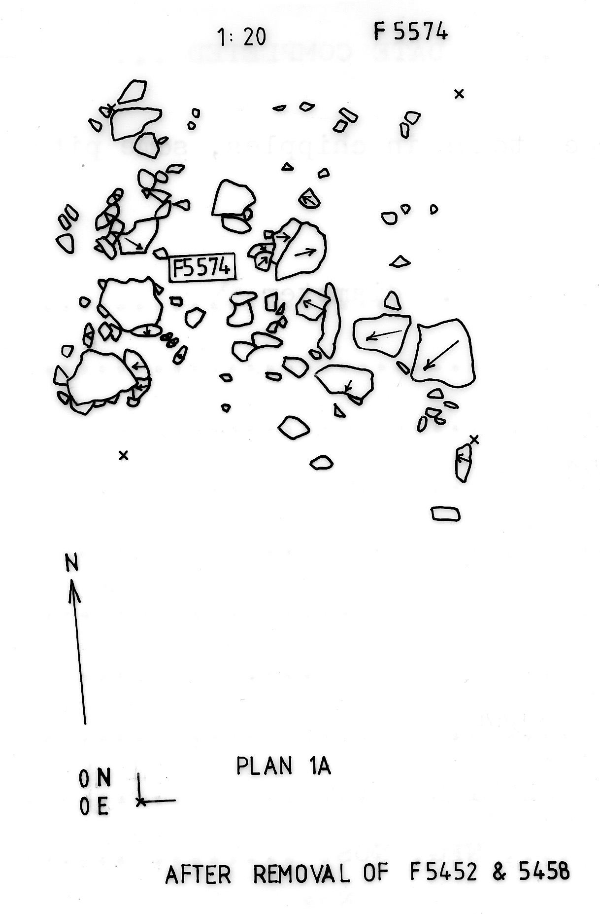 tract of small stones downhill of F05452 (wall collapse). In Y94 this = layer