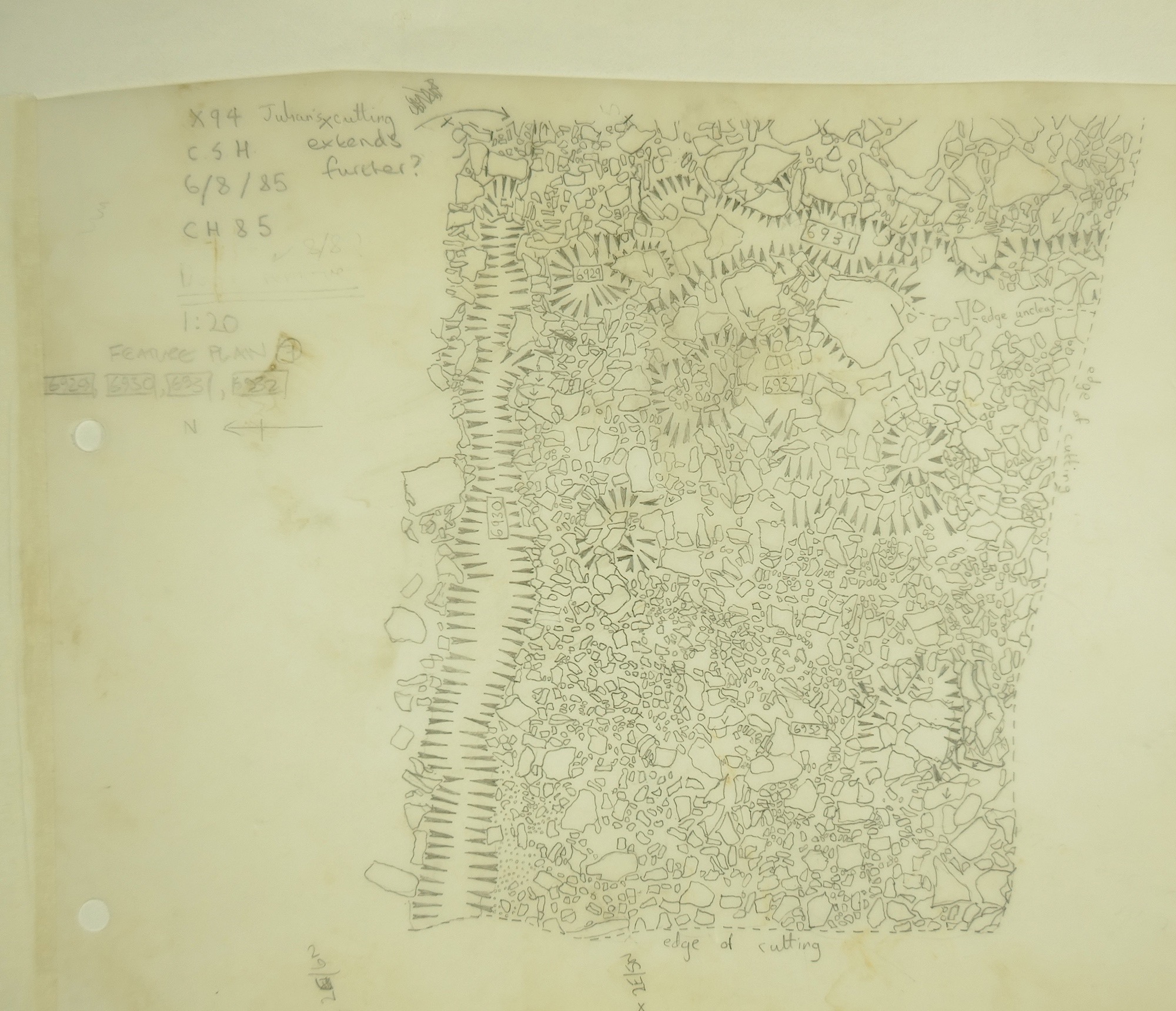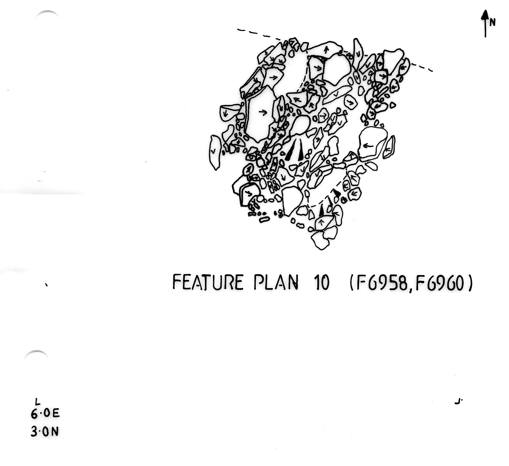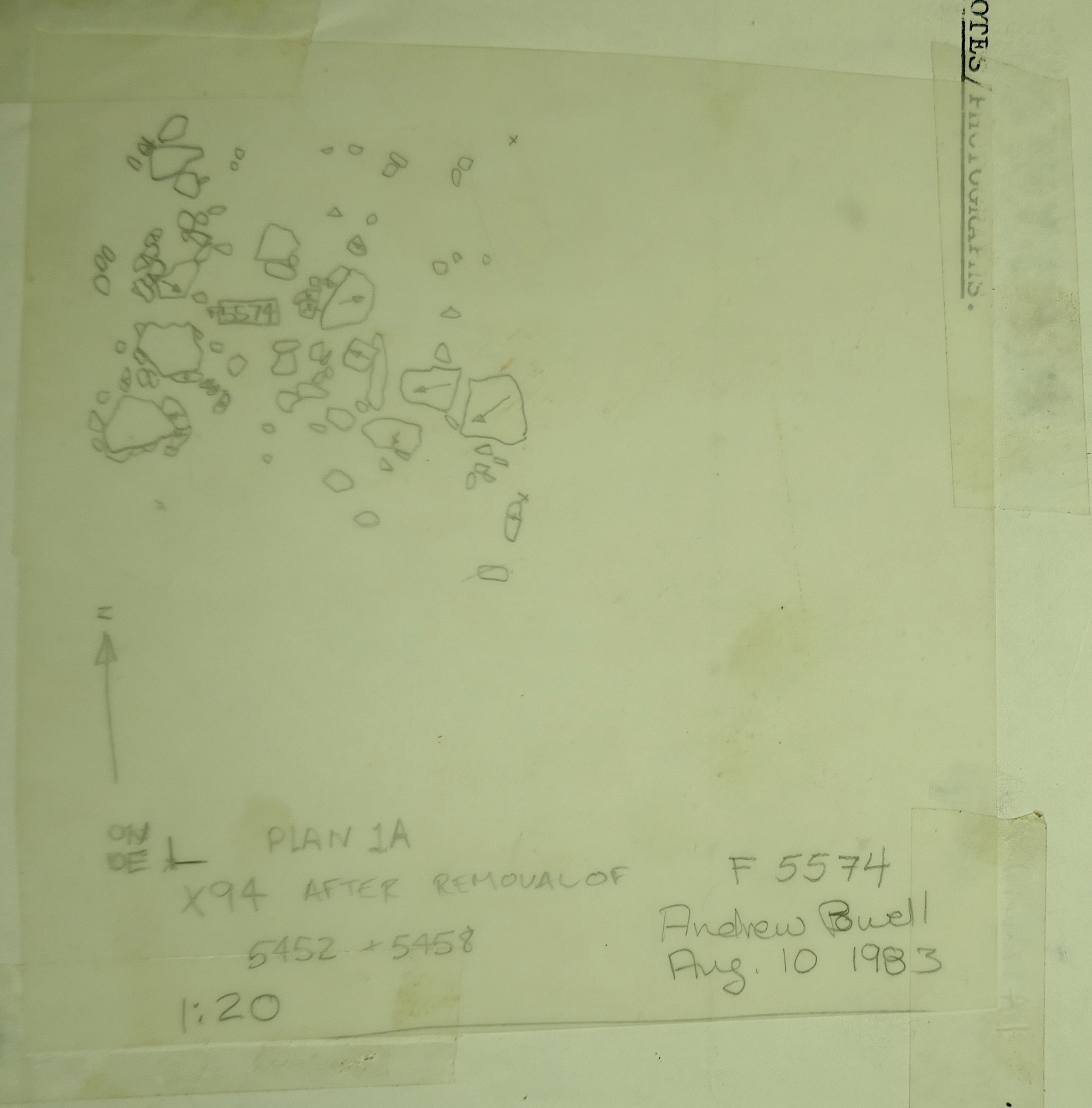 tract of small stones downhill of F05452 (wall collapse). In Y94 this = layer