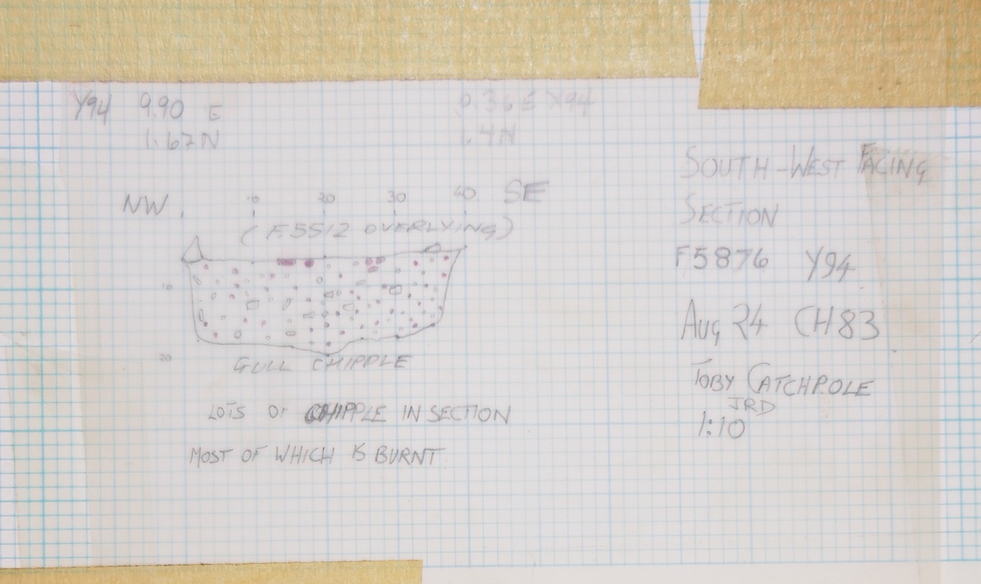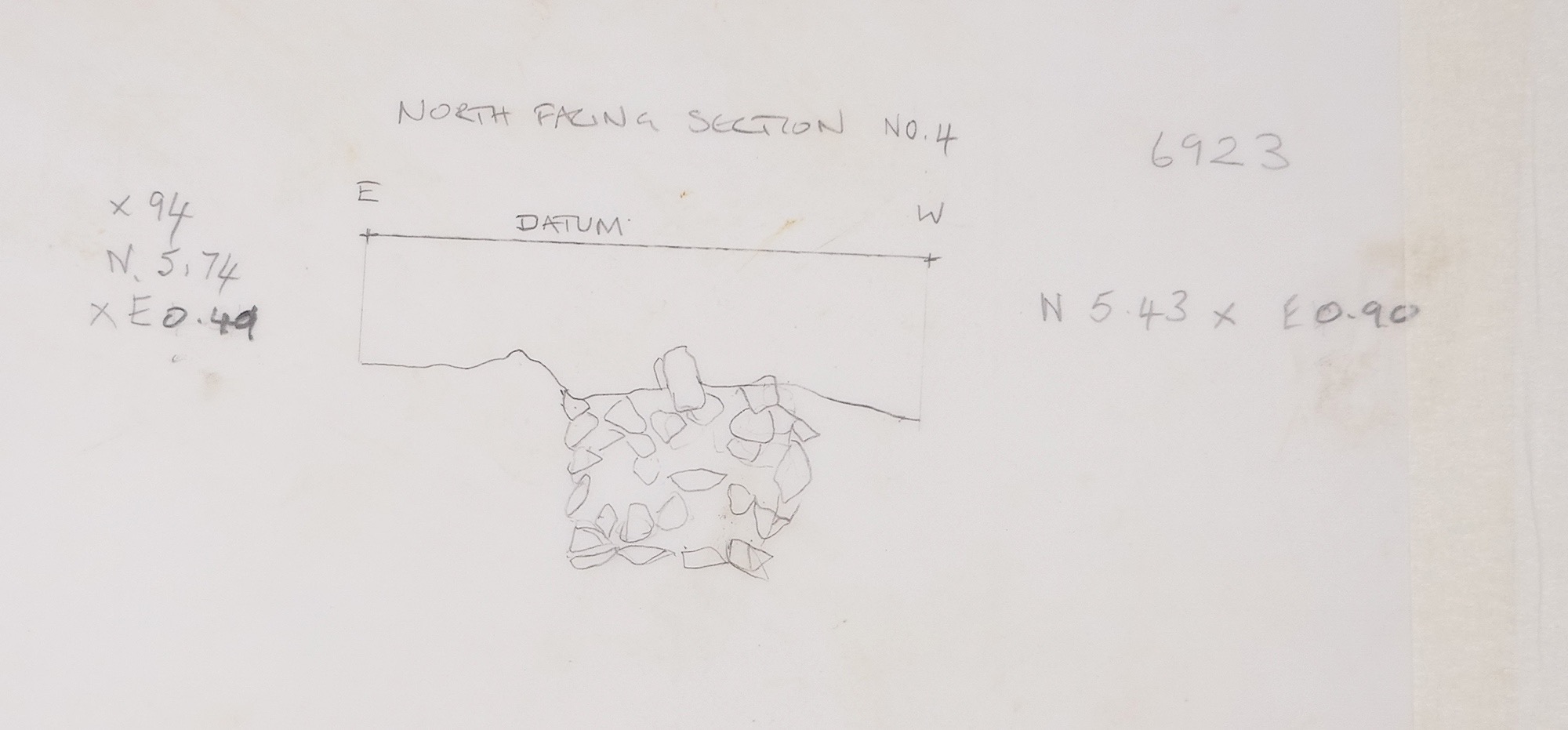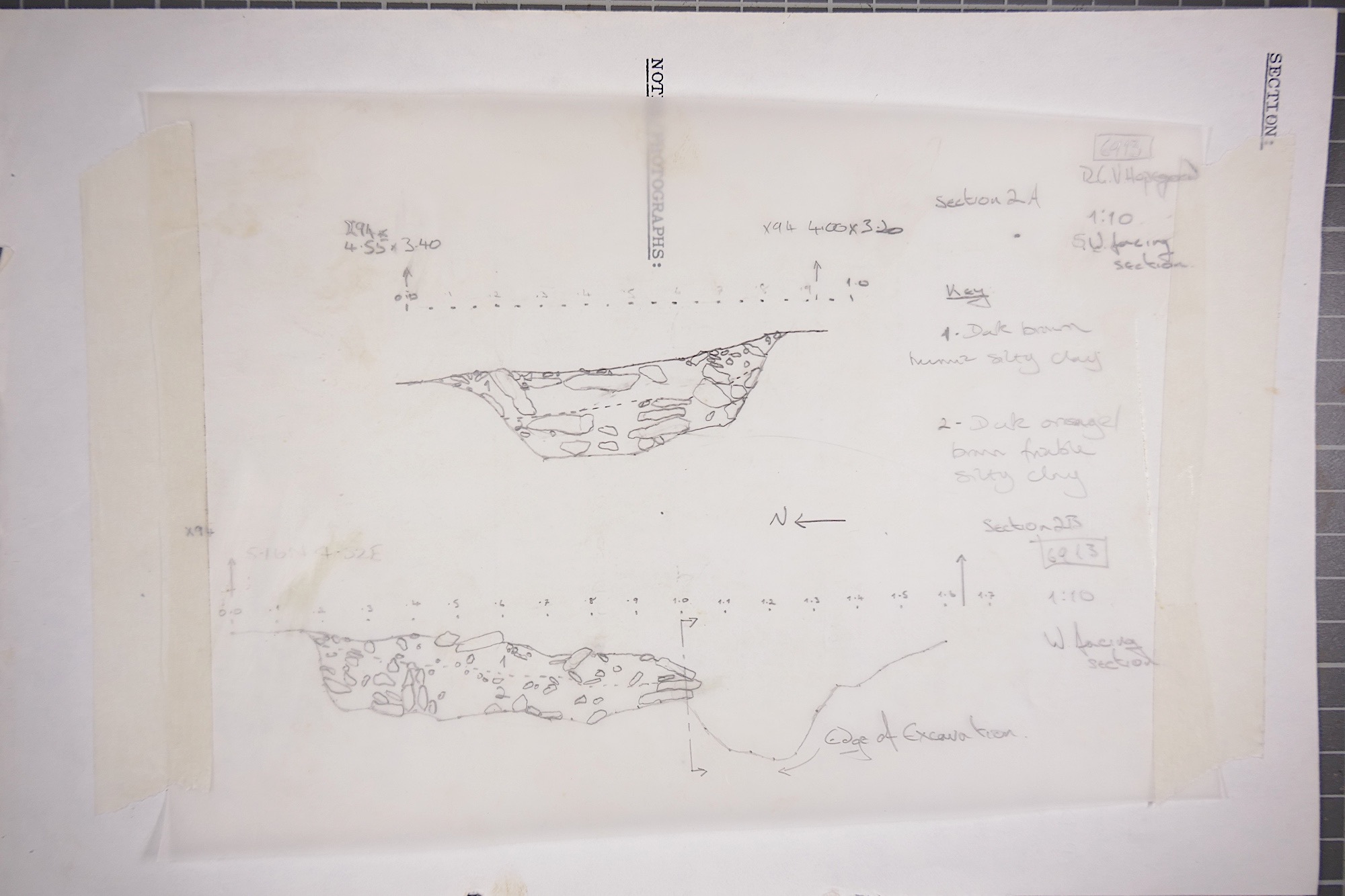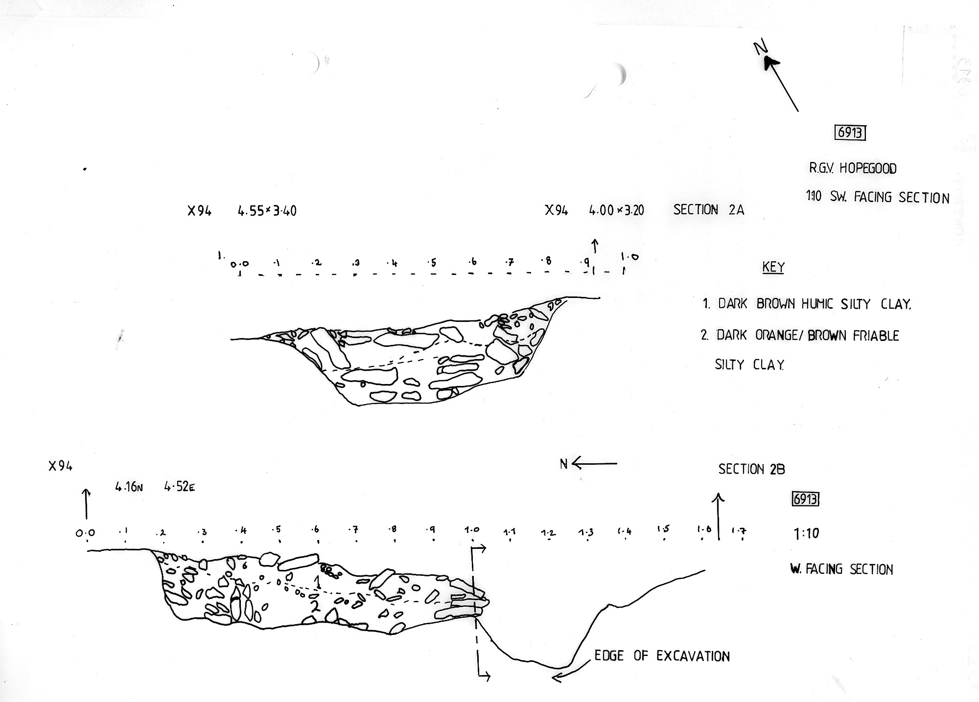 limestone frags in darker material. Lower fill of earlier part of causewayed