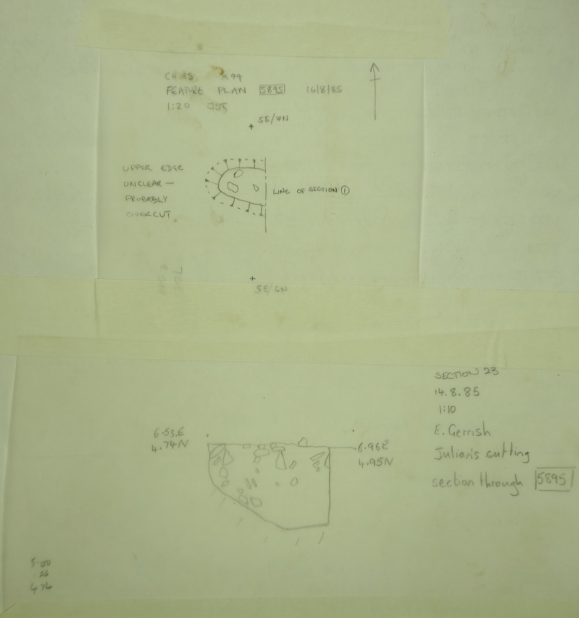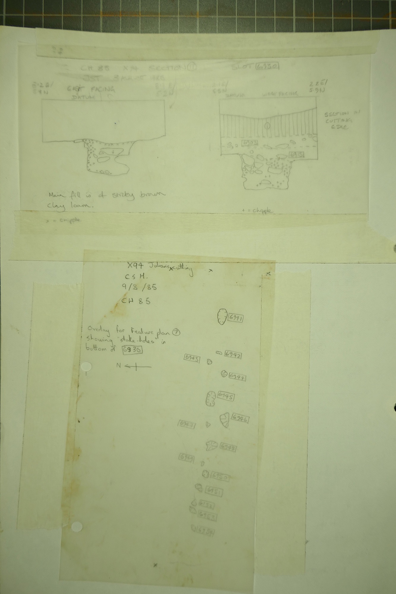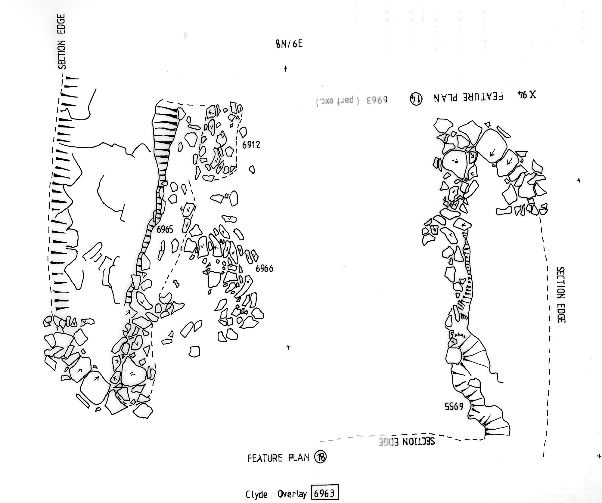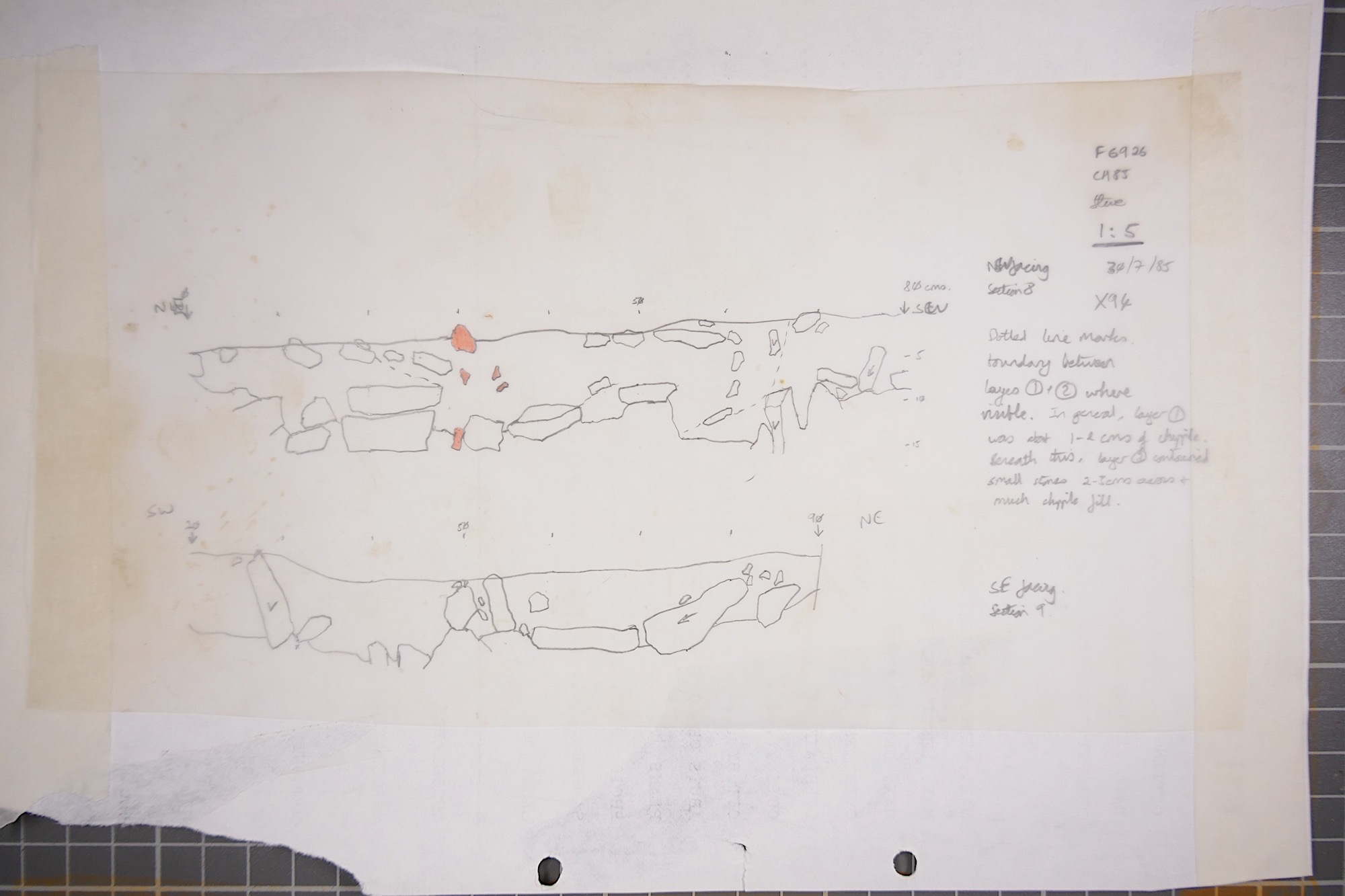 limestone frags in darker material. Lower fill of earlier part of causewayed