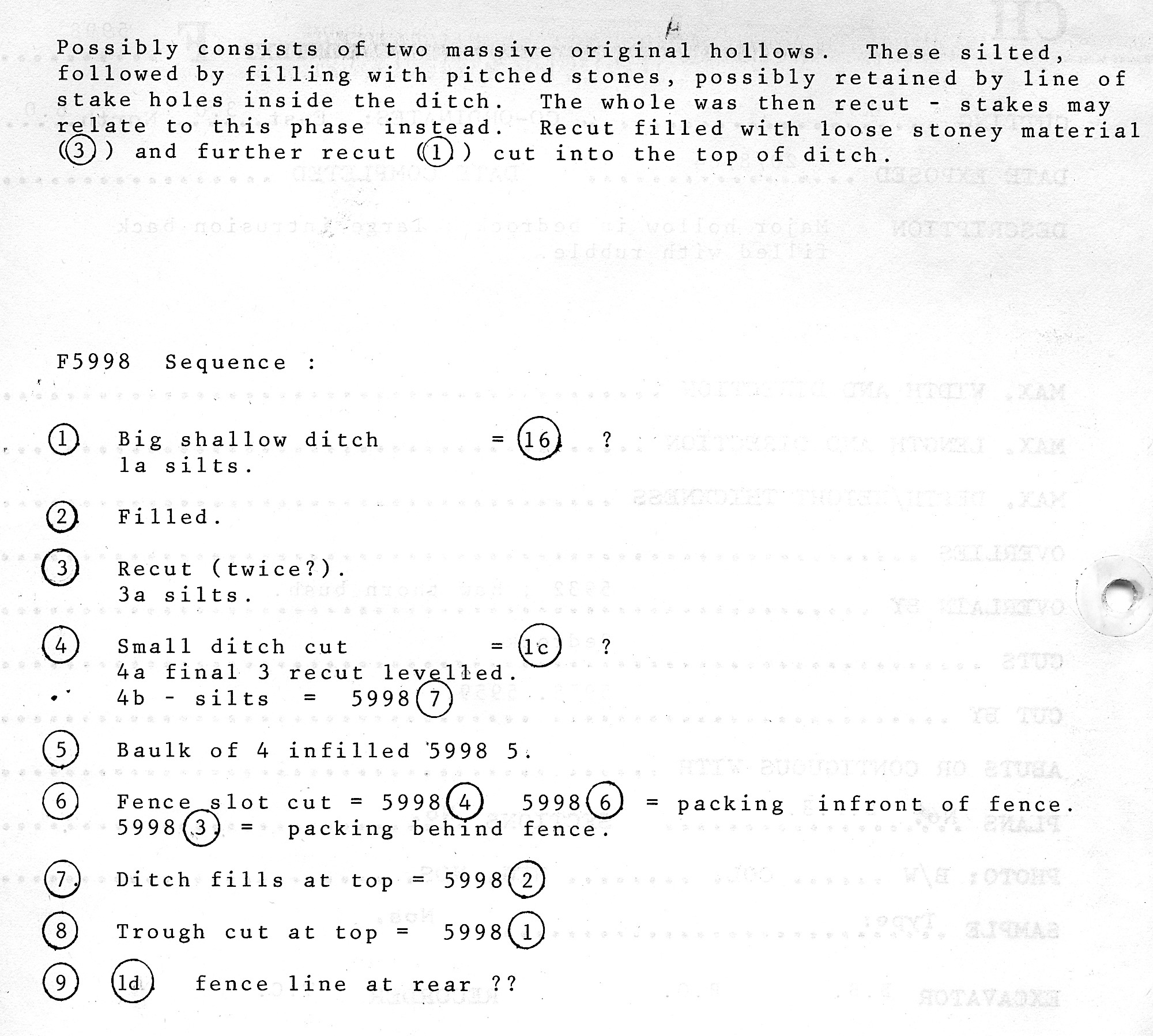 in causewayed ditch terminal revealed in section in tree baulk. Circular hole