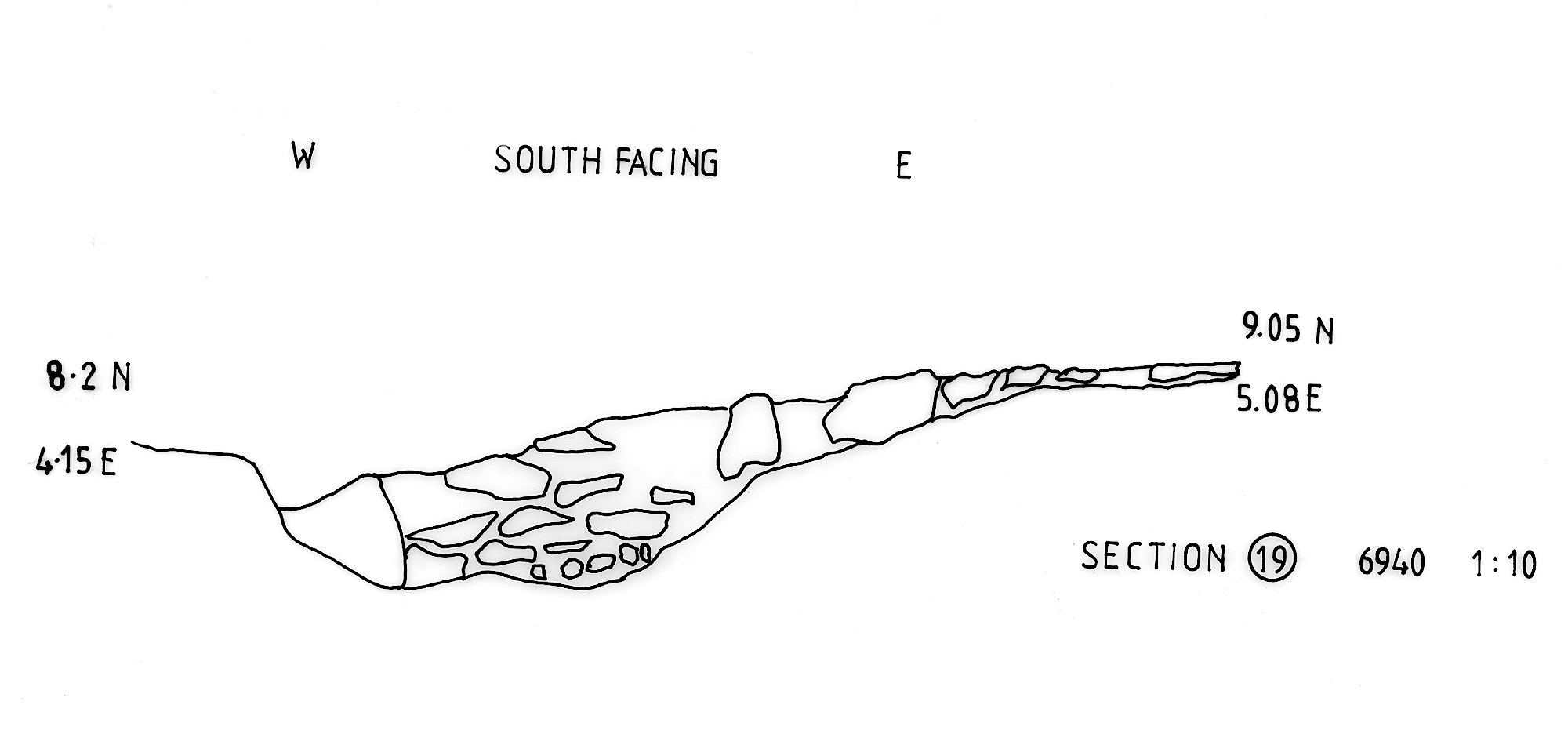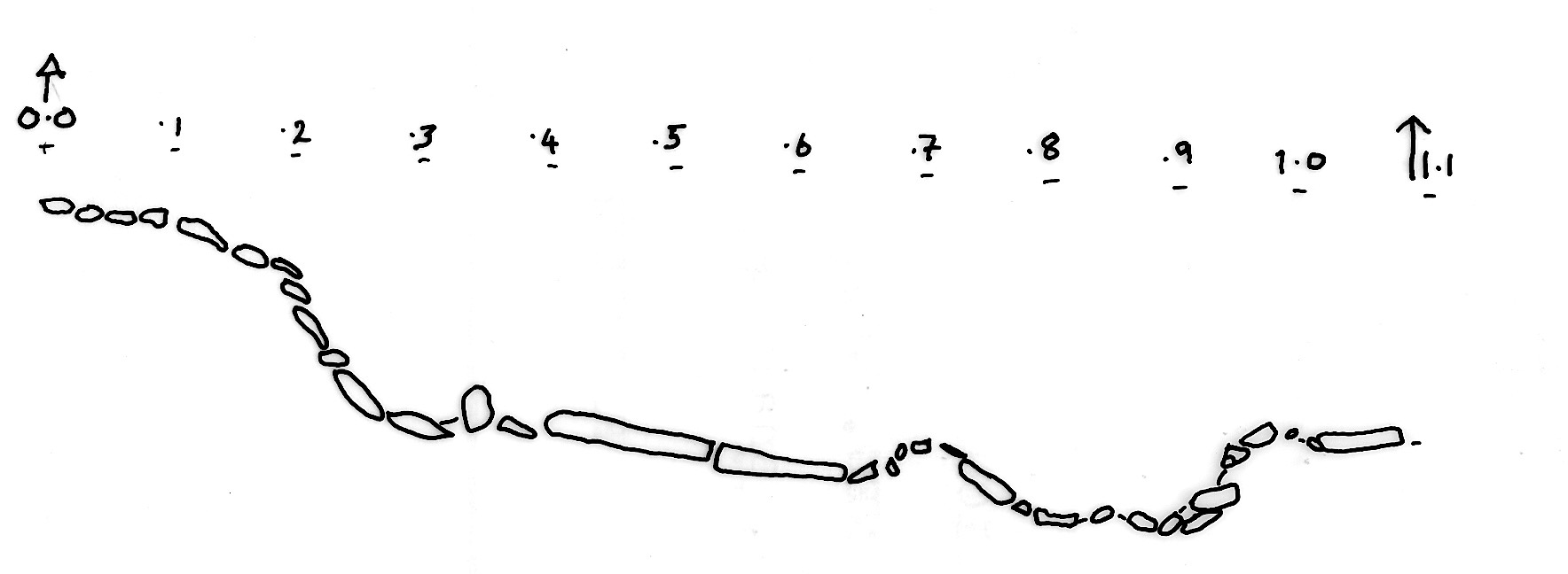‘wall’ fragment of variably sized limestone blocks. Wall or natural? |