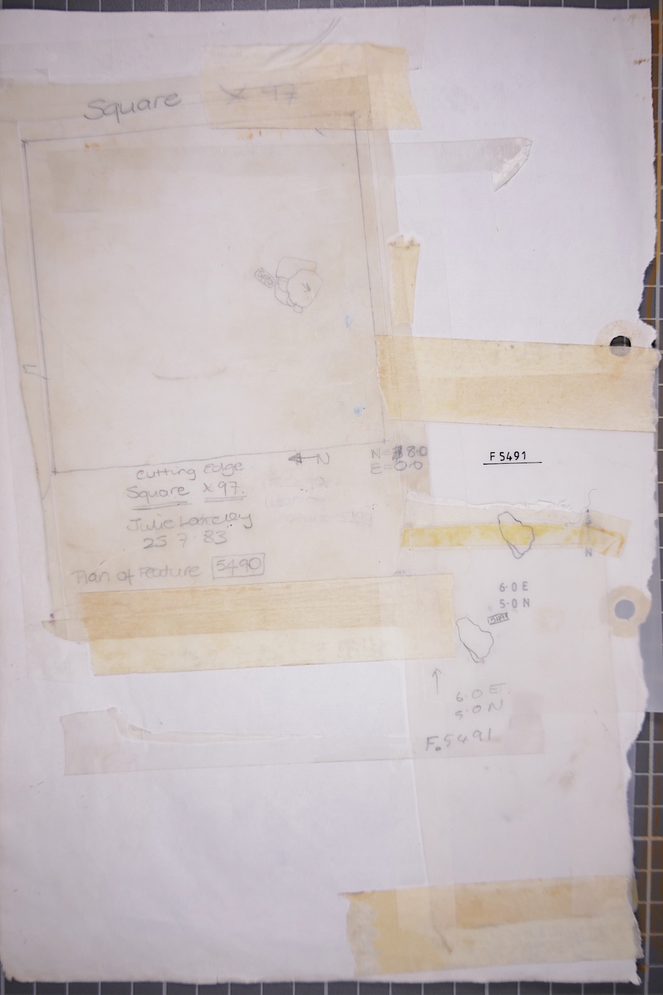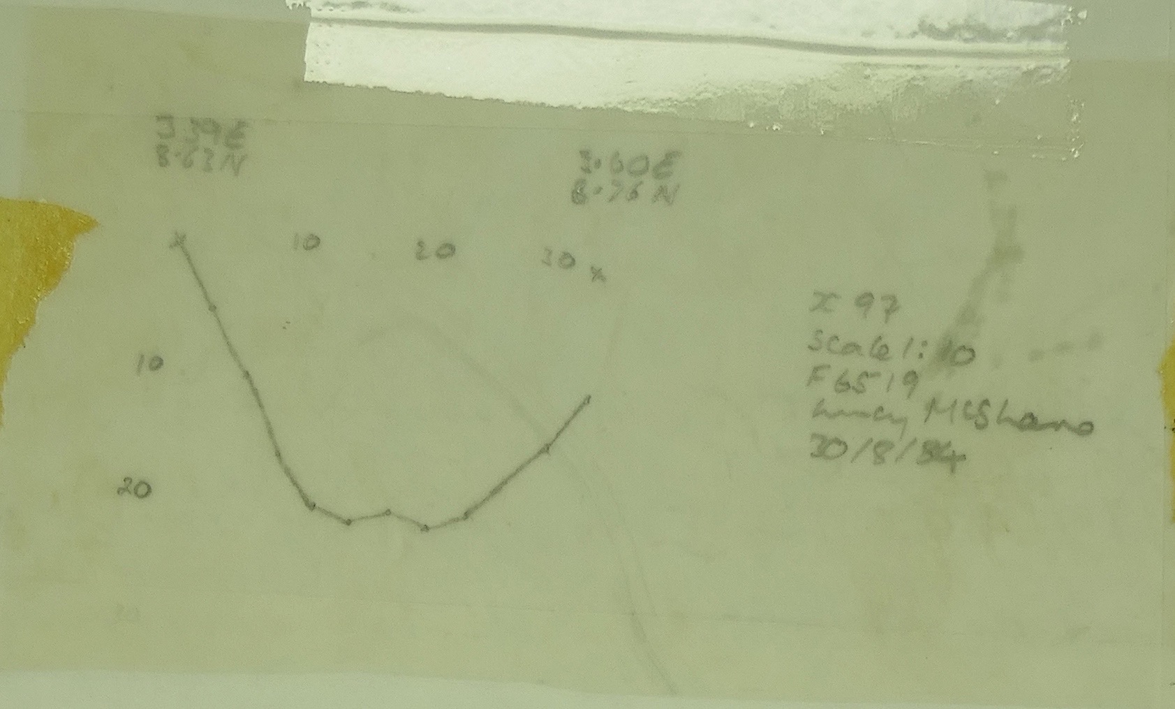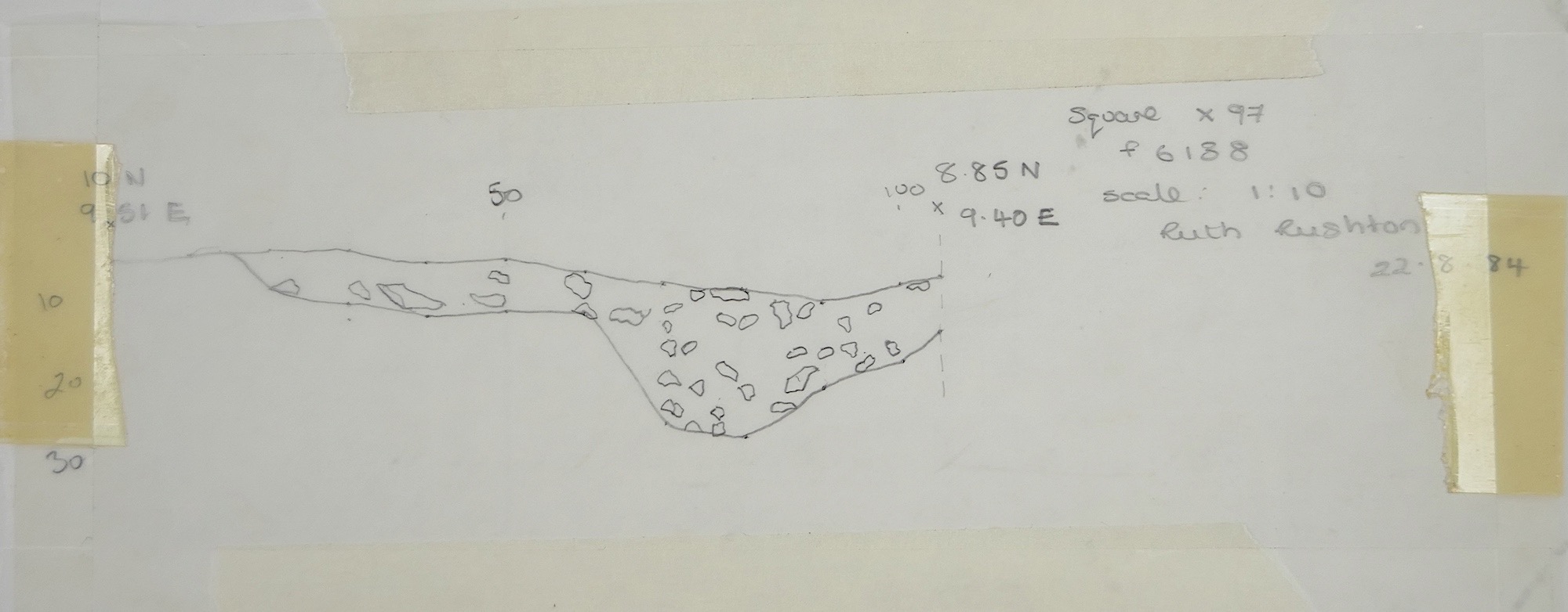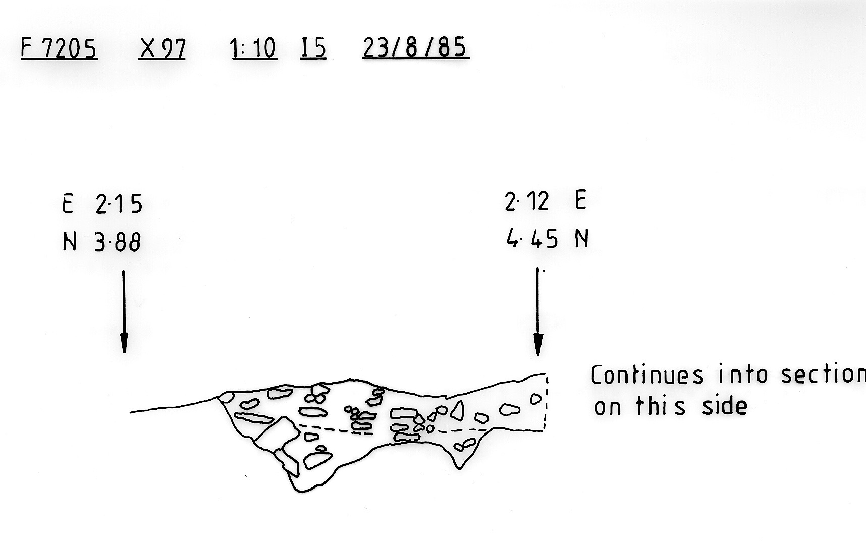 of small stones, w occ medium-sized ones, at E end of X97, extends W in X97. |