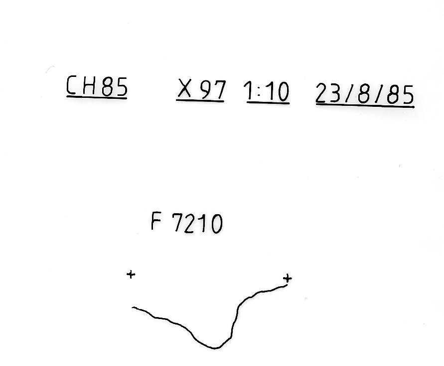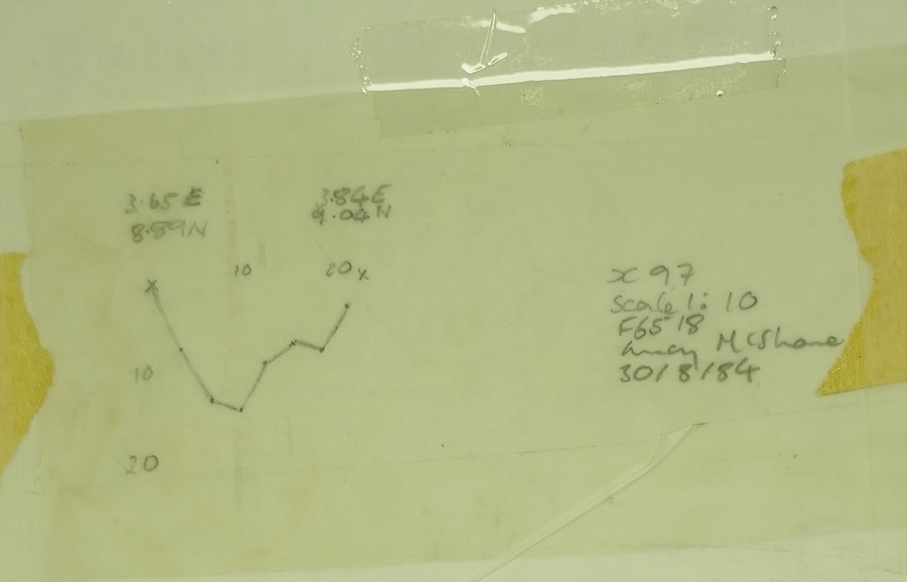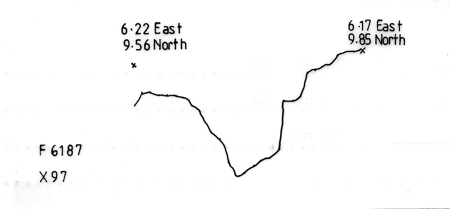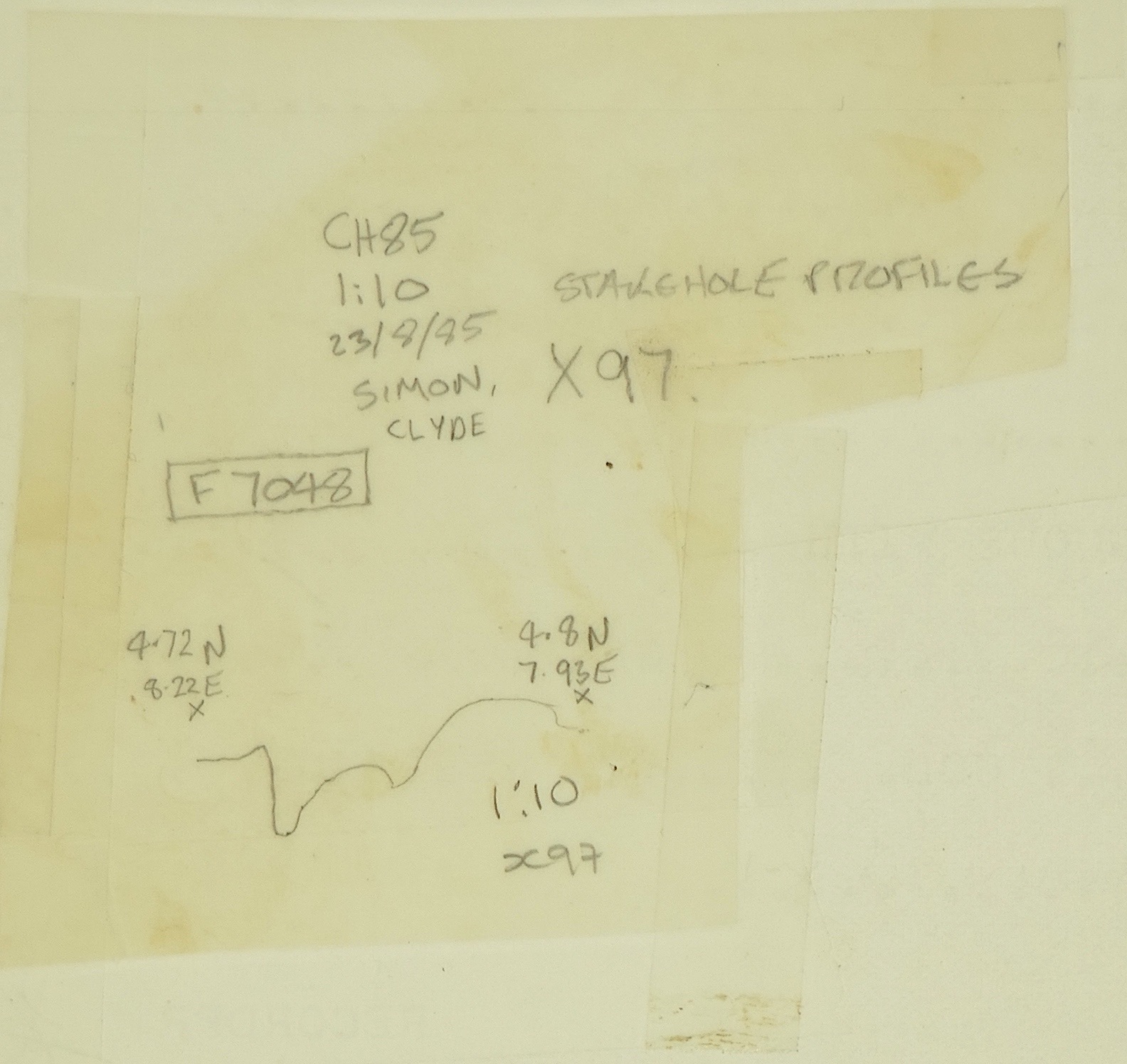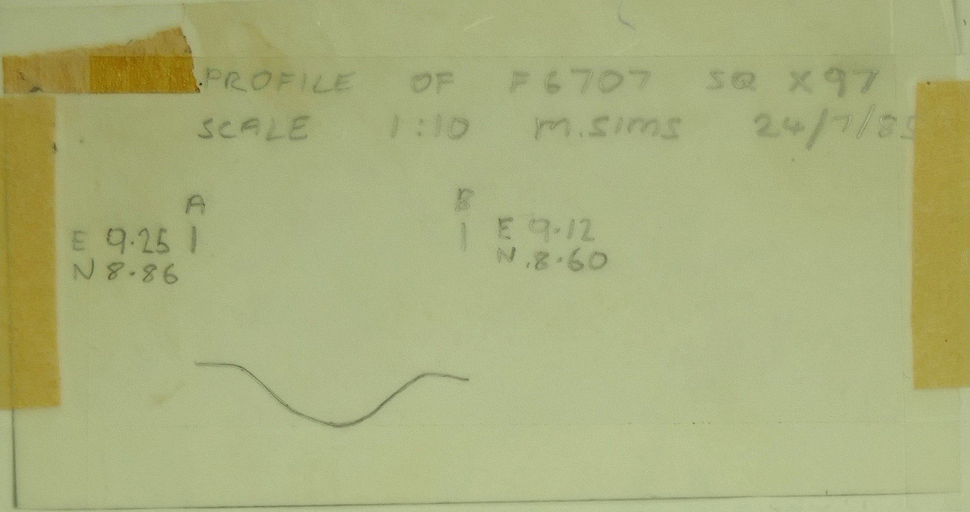 of small stones, w occ medium-sized ones, at E end of X97, extends W in X97. |