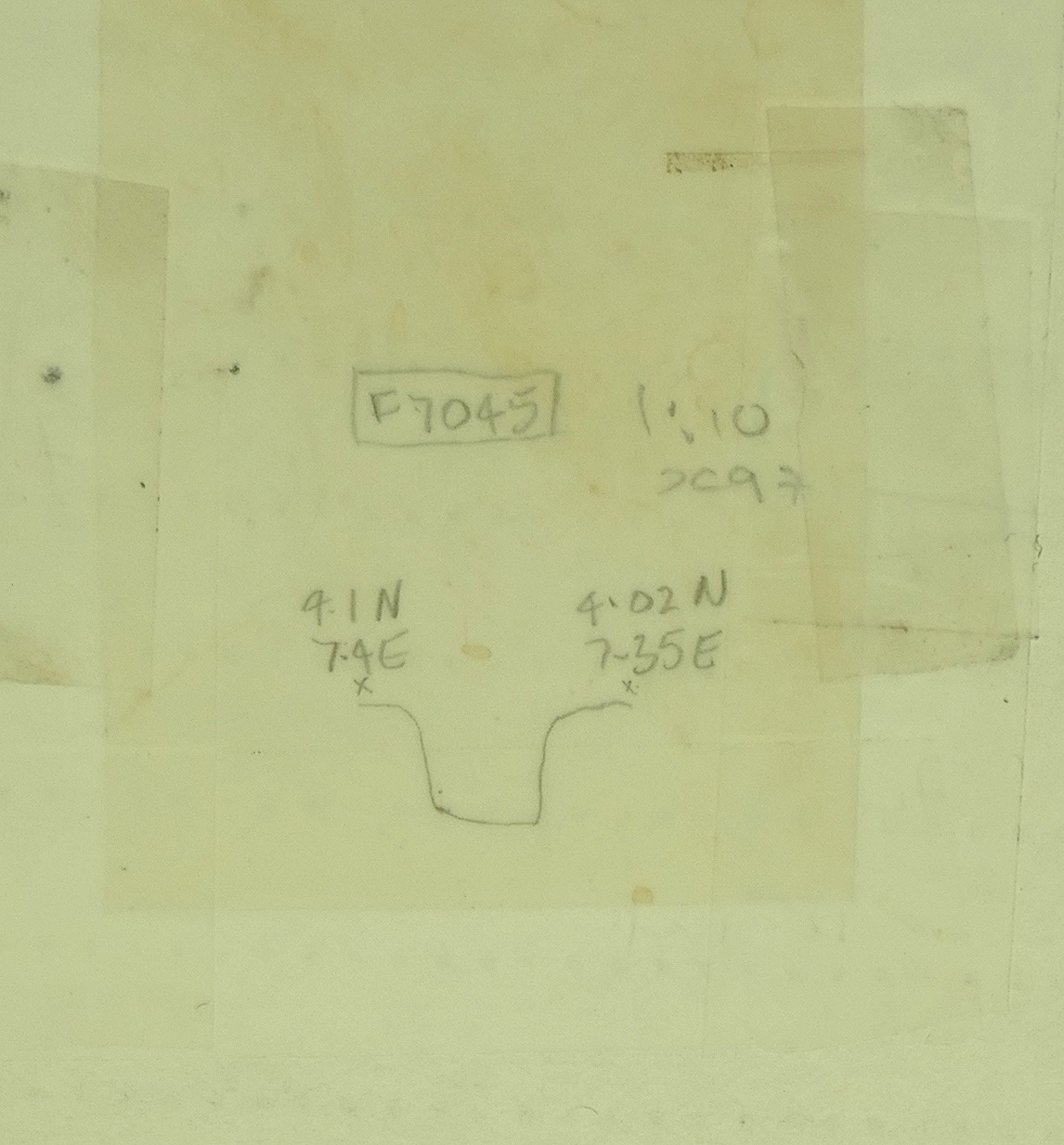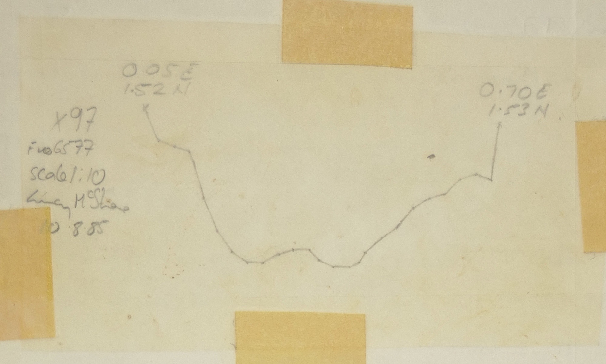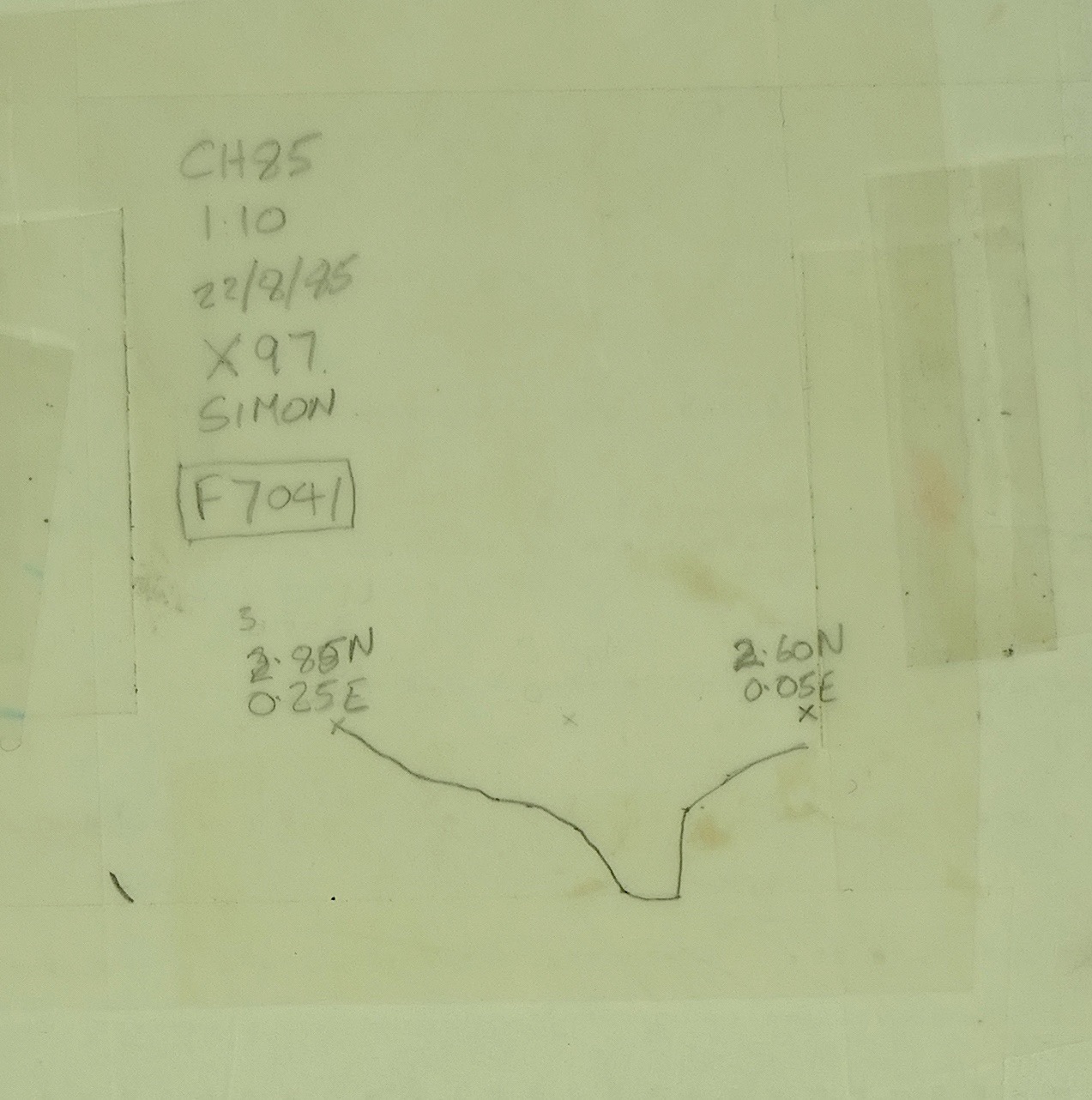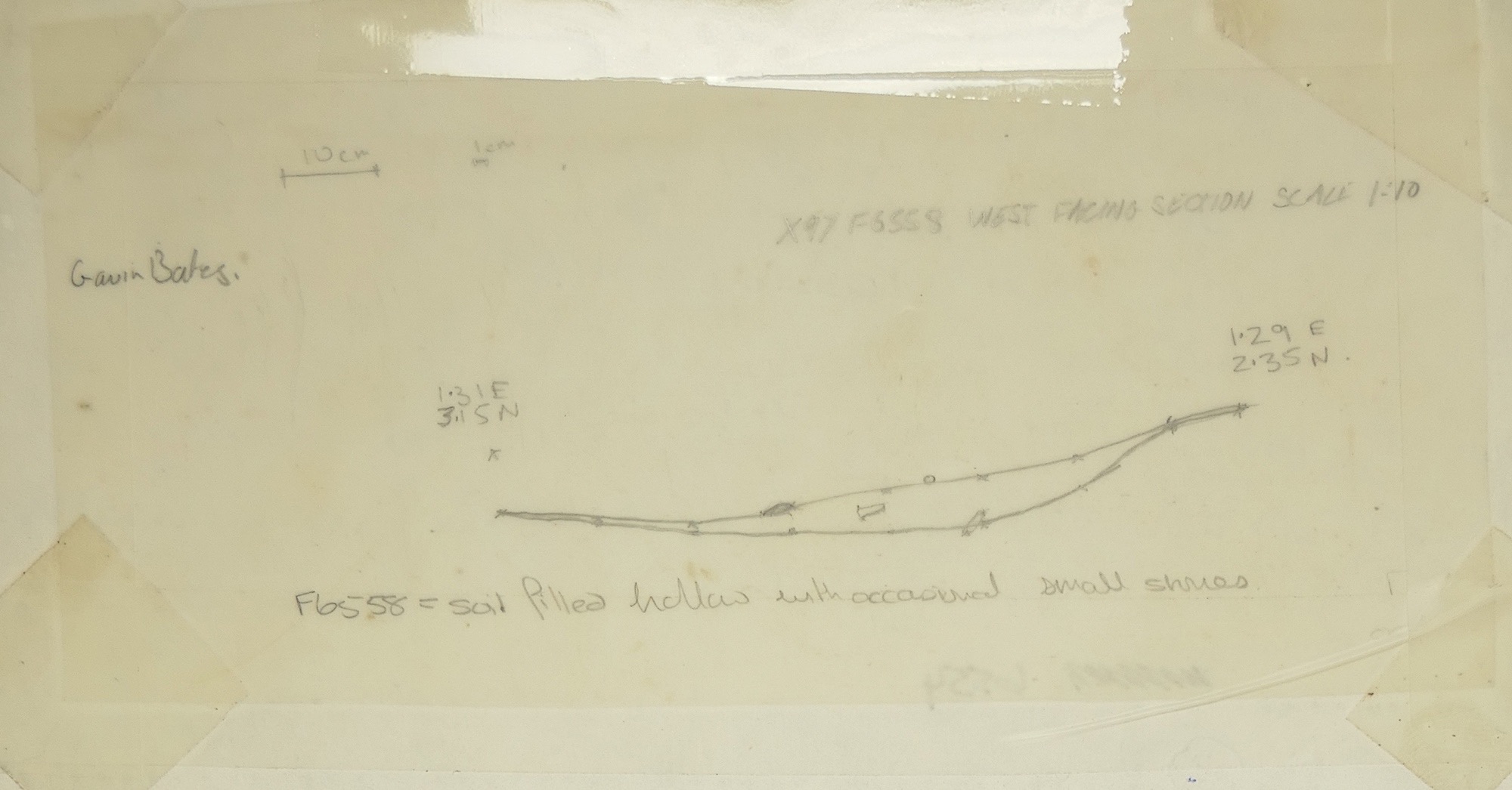 of small stones, w occ medium-sized ones, at E end of X97, extends W in X97. |