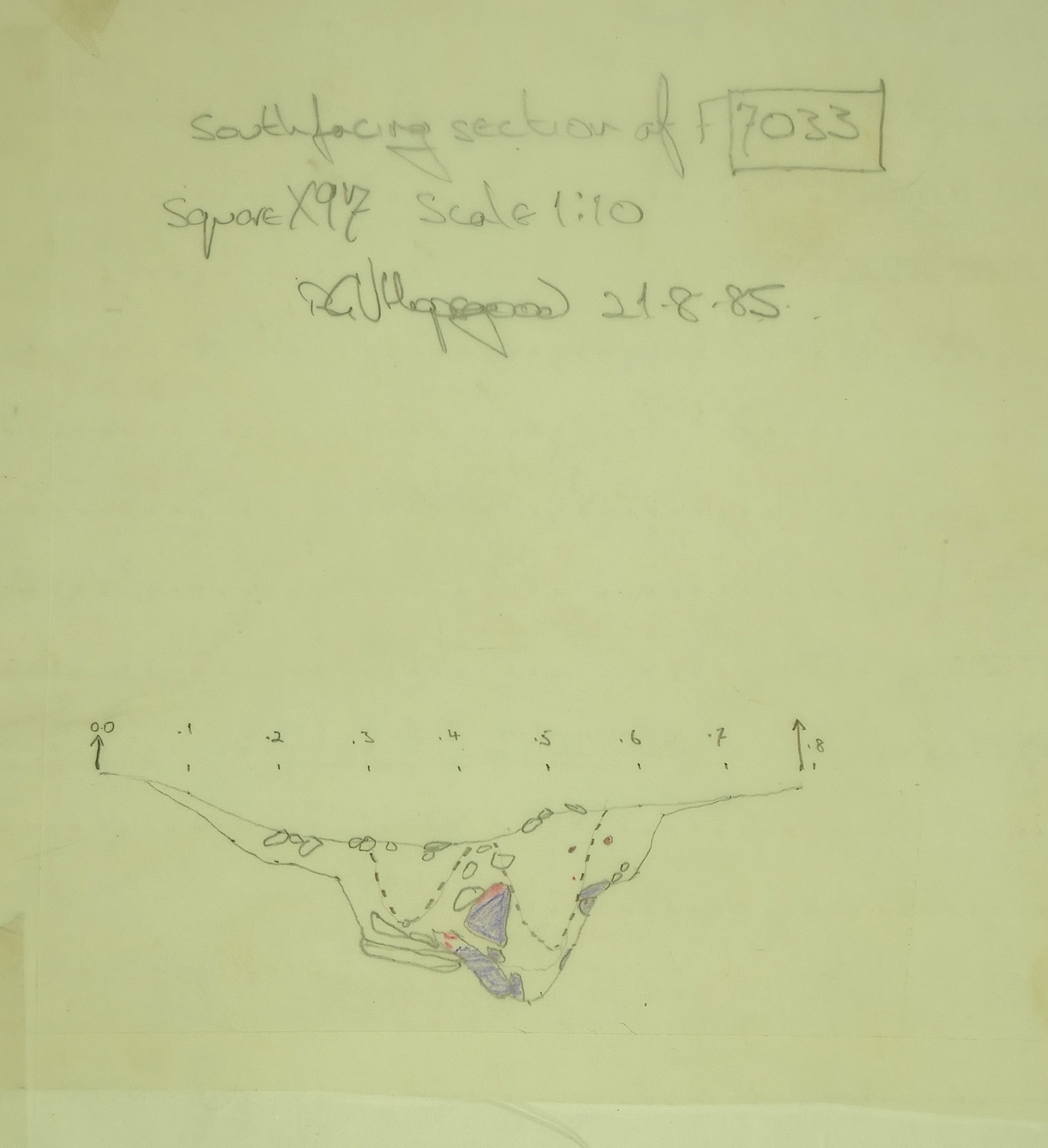 of earth with small stones and occ medium stones. 6 layers identified. See